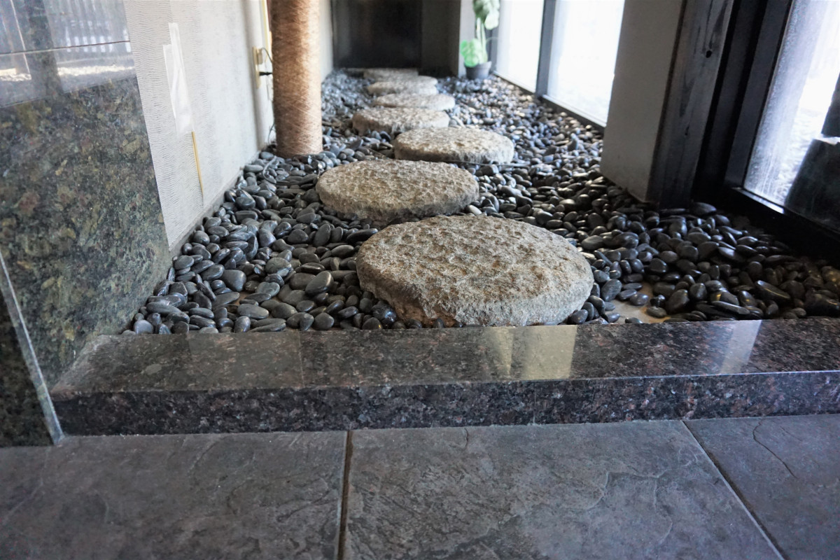 駐車場完備(すべて一般駐車場)です。トイレの貸し出しありですが、入り口までの通路は飛び石と砂利が置かれています。