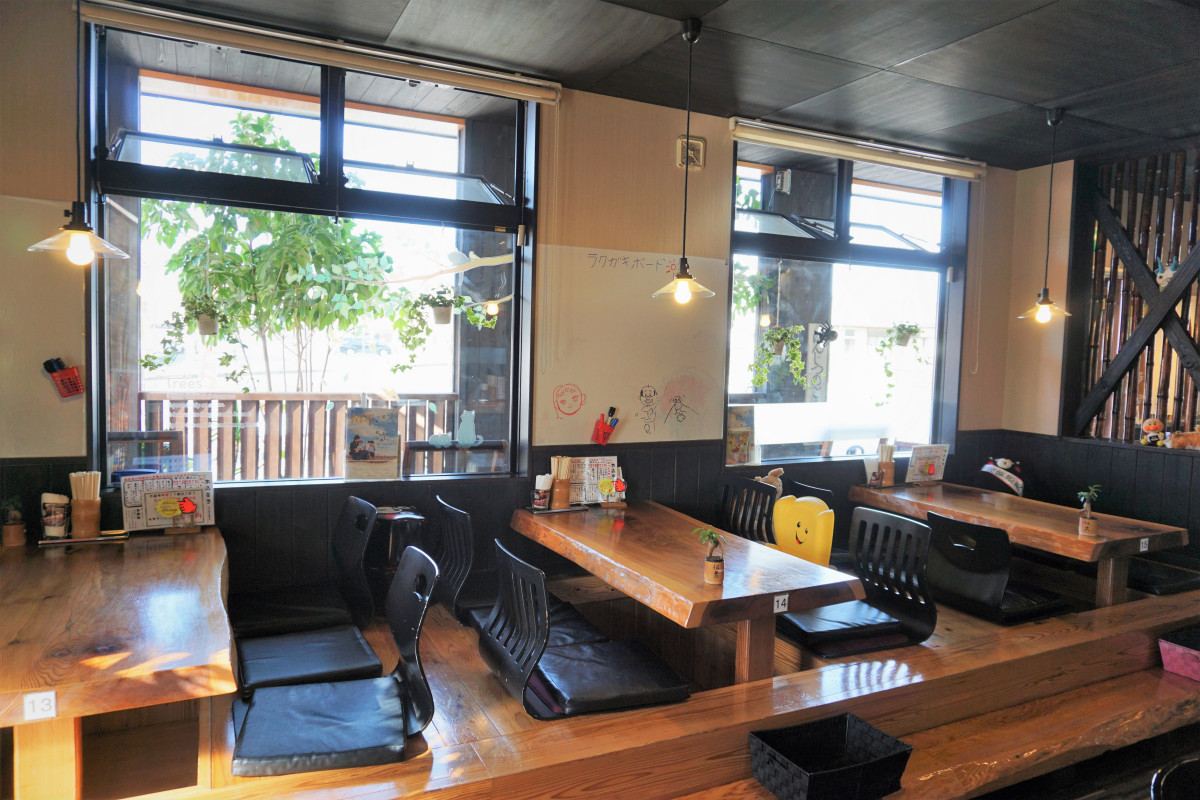 ご家族連れや女性お一人様で入りやすいラーメン屋をコンセプトに、ラードを入れないヘルシーなとんこつラーメンを作っています。男性の方など、ラードが欲しい方、塩分濃いめ、ねぎなし等のご要望にもお答えできますので、遠慮なくお申し付けください。当店のラーメンに合う特別に作っていただいた嬉野茶や、お子さまがご来店された際にお出しする簡易エプロンやお手拭セットなどをご用意しております。店内は落書き用ホワイトボードの設置など、お子さま連れでもゆっくり過ごしていただけるよう工夫をしています。ご家族でのご来店、お待ちしております。