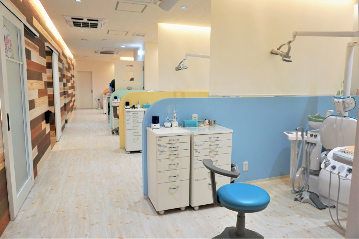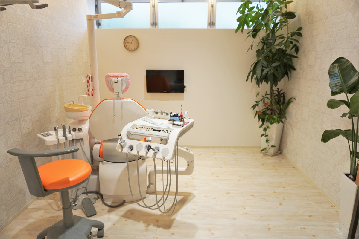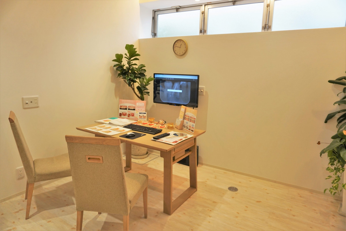 駐車場完備。入り口は2段の段差とスロープあり、院内はすべてフラットのため、ベビーカーや車いすのままで診療スペースへ入ることができます。個室あり、カウンセリング室もゆっくりとお話を聞かせていただけるようになっています。大きなモニターを使って丁寧に治療の説明をいたします。