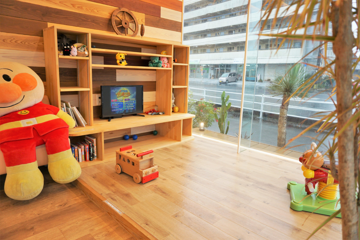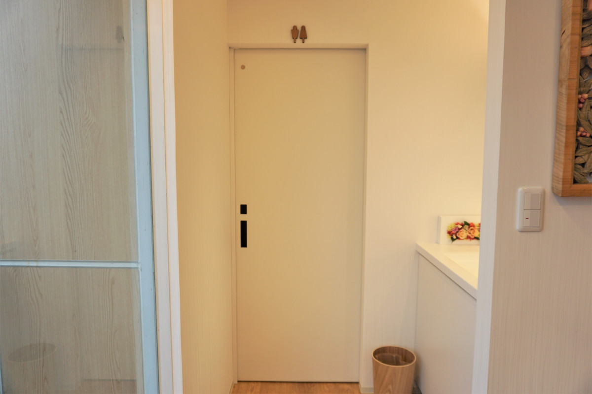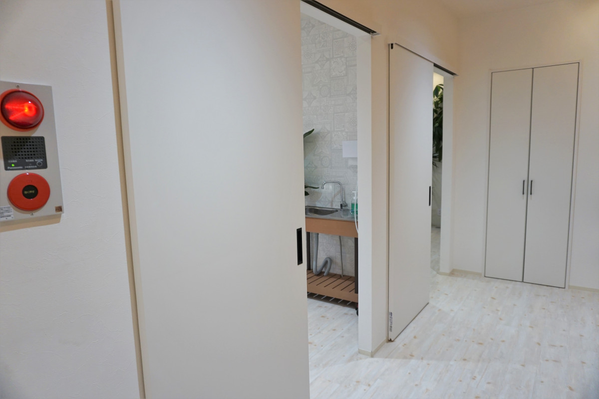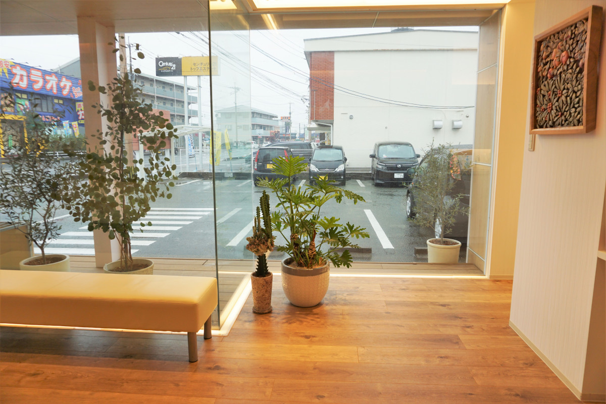 駐車場完備。入り口は2段の段差とスロープあり、院内はすべてフラットのため、ベビーカーや車いすのままで診療スペースへ入ることができます。個室あり、カウンセリング室もゆっくりとお話を聞かせていただけるようになっています。大きなモニターを使って丁寧に治療の説明をいたします。