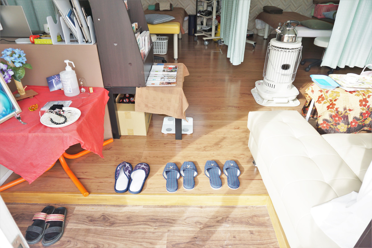 舗装なしの駐車場あり。入口と屋内に段差がございますので、お写真にてご確認ください。来院が難しい方は出張治療(交通費別途)も行いますので、一度ご相談ください。