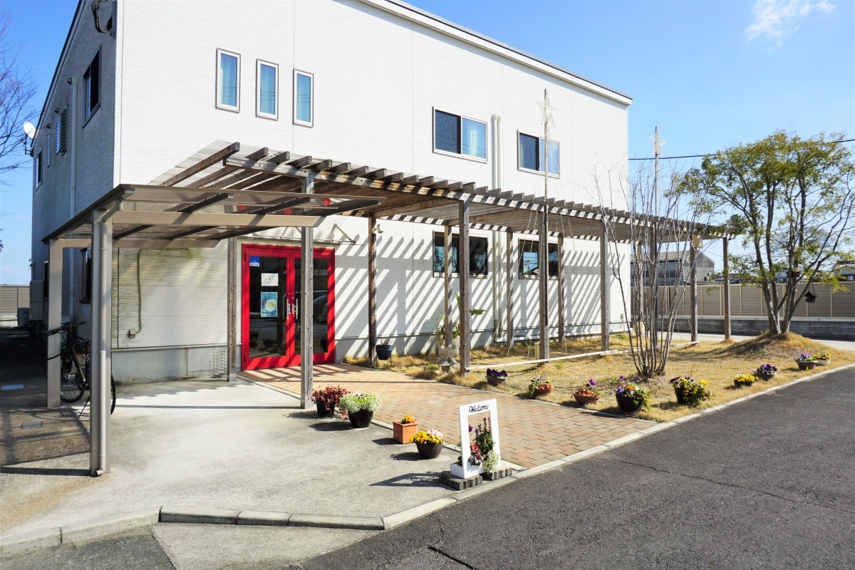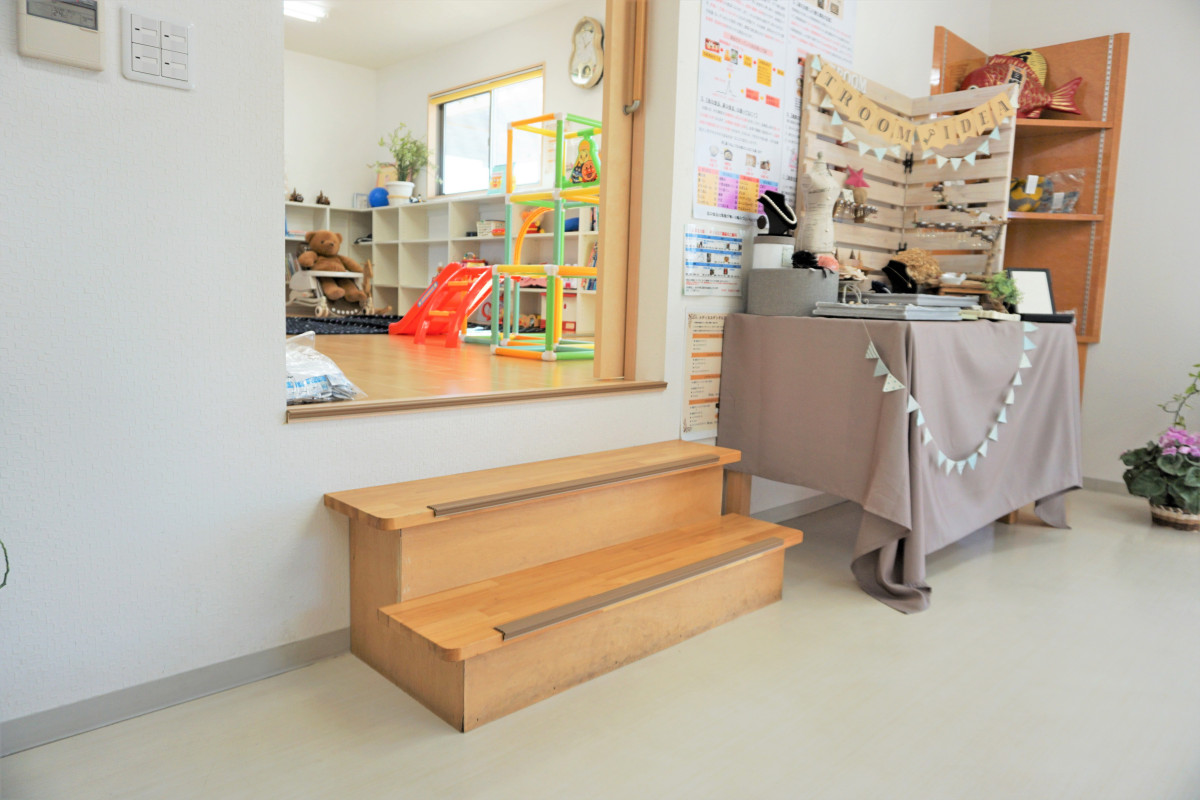 はっとり歯科医院の隣に位置します。駐車場も広く店内まで段差はございません。託児や教室を行う部屋、その奥にあるトイレは、靴を脱いで上がっていただきます。はっとり歯科医院から来店される場合は敷地内に連絡通路がありますが、少々段差があります。お写真にてご確認ください。ご来店が難しい場合はオンラインショップもございますので一度ご覧ください。
