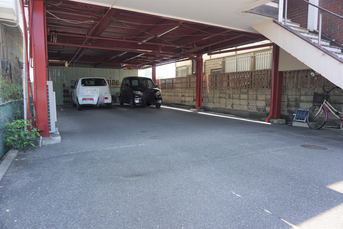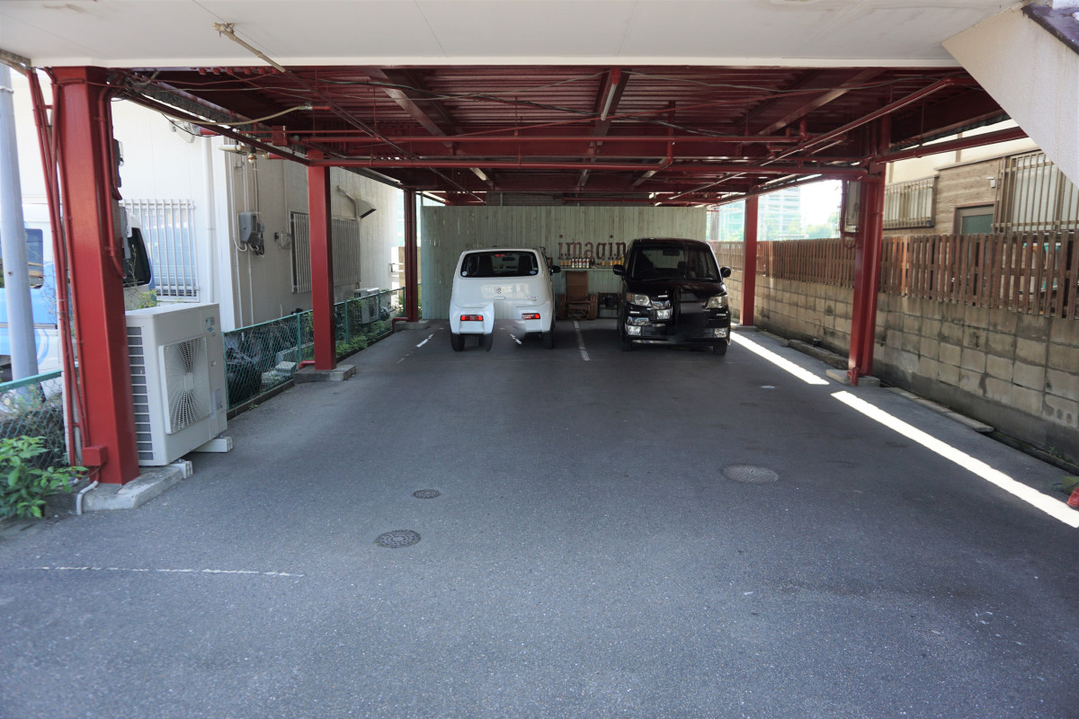 店舗の下に3台、一軒挟んだ南側に3台分の駐車場があります。