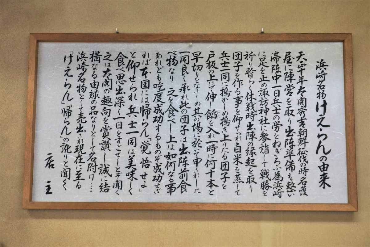 浜崎にある「伊藤けえらん」の新家です。400年の秘伝を守り大切に作られている「けえらん」は現在4代目店主により、そのまま受け継がれ、観光に便利なバイパス沿いの新家でもご購入いただけます!豊臣秀吉が朝鮮出兵の際、地元民によって献上された戦勝祈願の菓子。もち米ではなく米粉を使い、柔らかく、でも弾力のある何とも言えない食感が特徴で、完全無添加のため日持ちが一日ということから、”幻の菓子”として愛されてきました。現在では、瞬間冷凍技術でおいしさそのままに通信販売にて、どこからでもご購入いただけるようになりました!秀吉公が「これを食べたなら勝つまでは帰らん(けえらん)」と言った逸話のある一品と、羊羹できた「呼子のいか」も唐津土産におすすめですよ♪ぜひ一度お試しください。