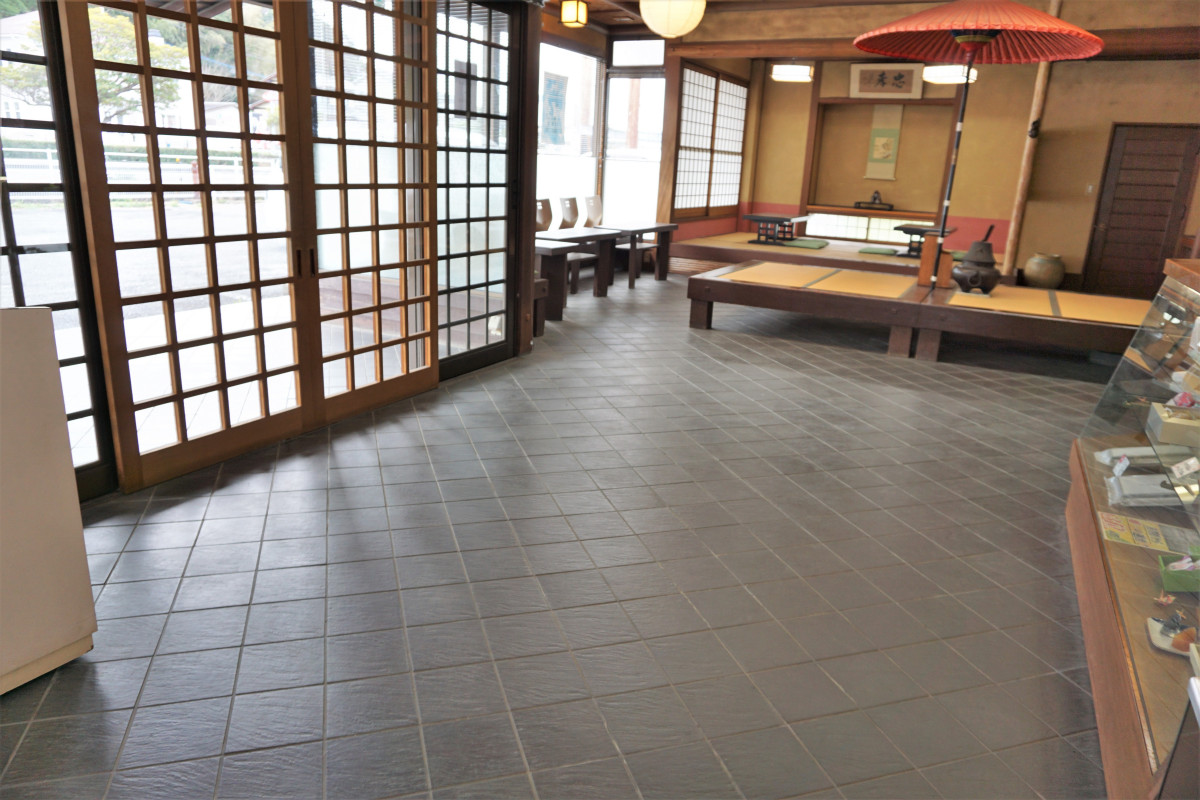 駐車場は広く、店内も広い空間がひろがります。小上がりの畳スペースがあり、キッズスペースとして活用できます。ベビーカーのまま、車いすでの入店可能ですが、入口の前に1段の段差がございます。