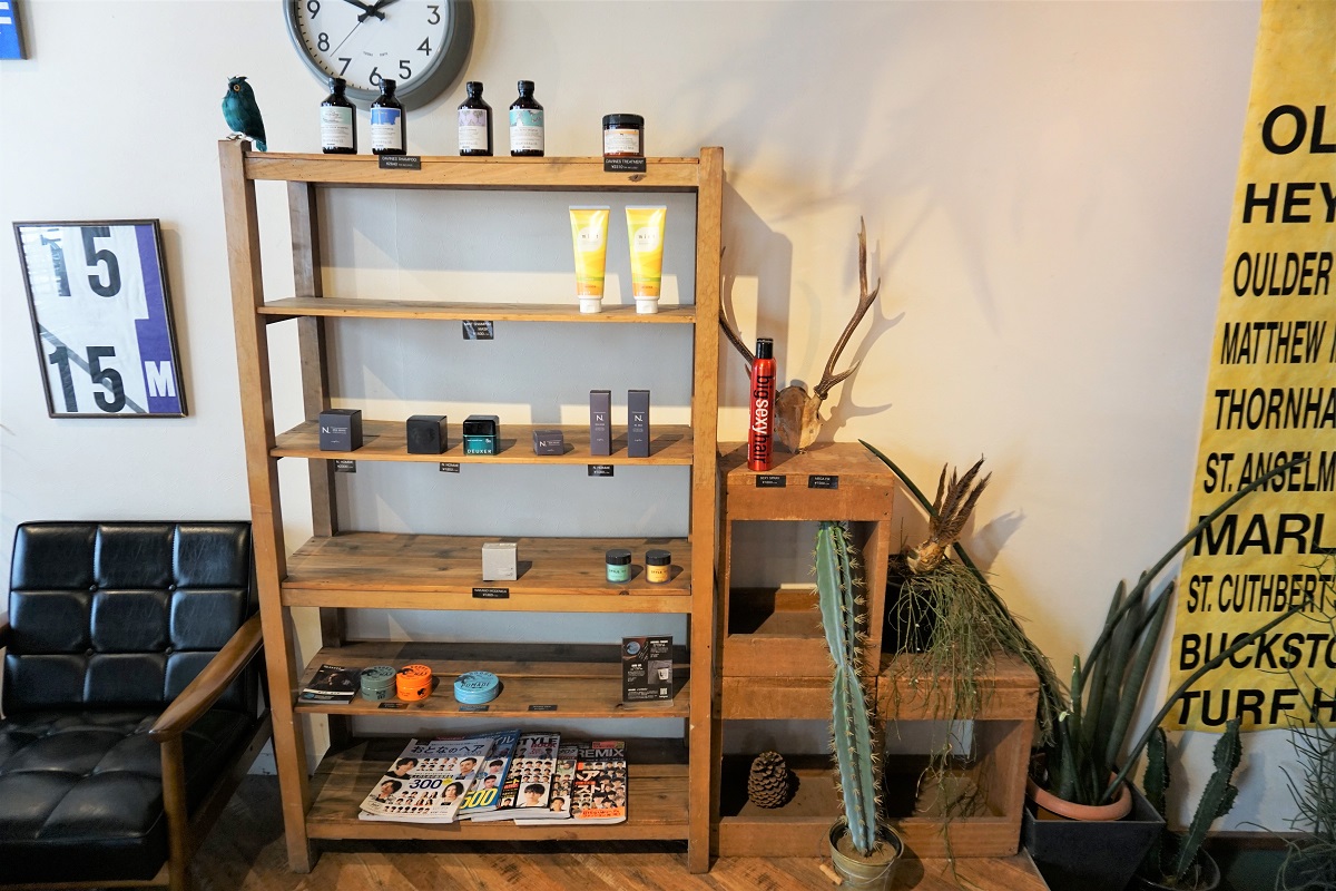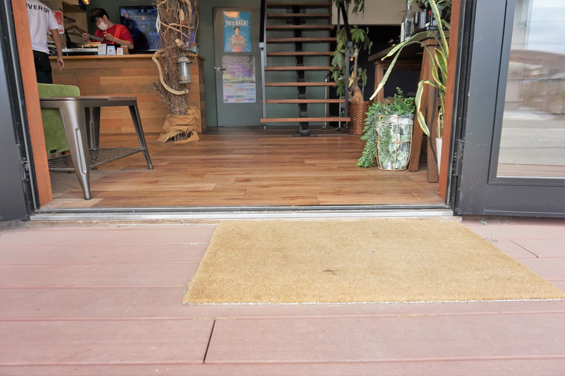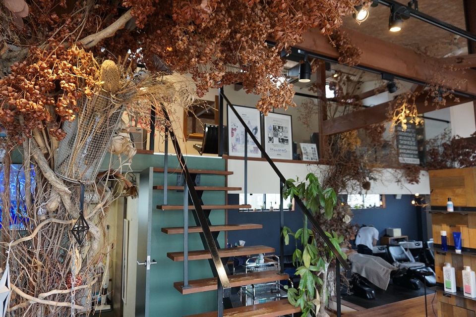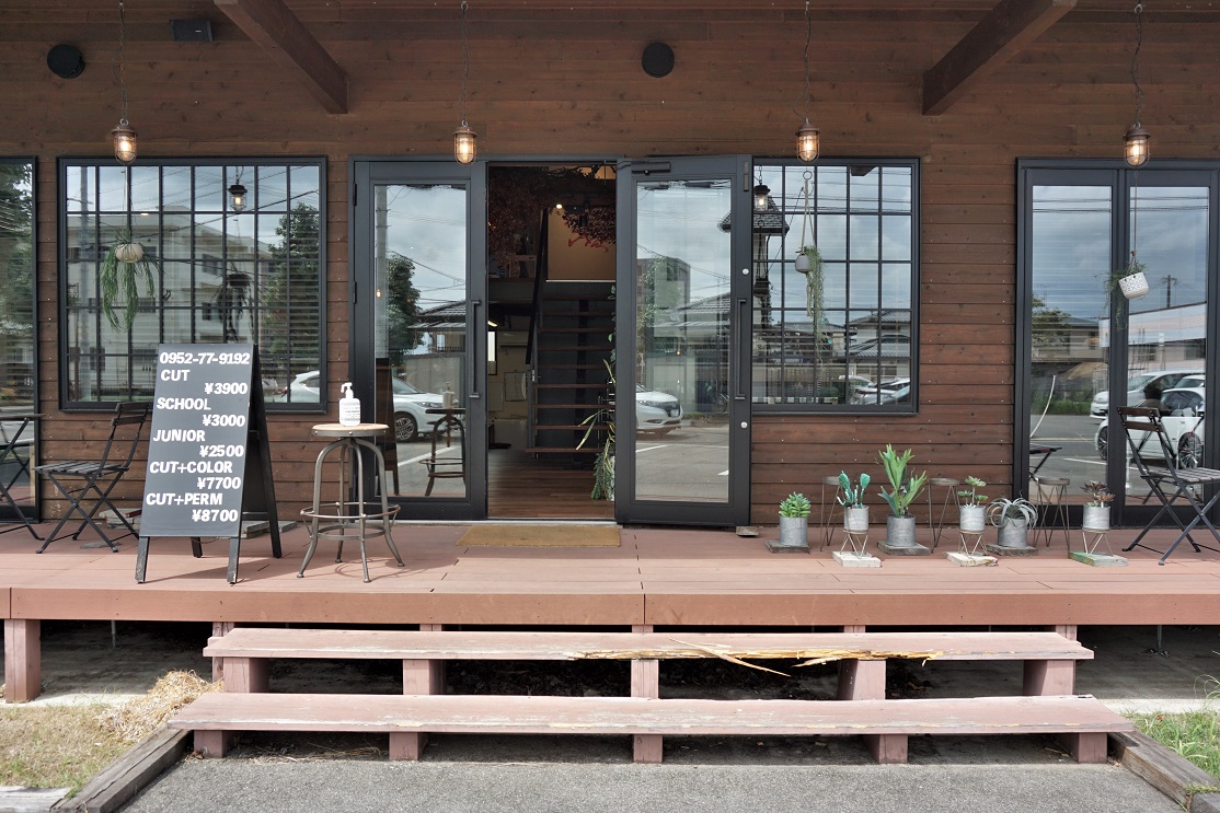 店舗入り口の前にはウッドデッキがあり入店までに3段の段差があります。屋内は解放感たっぷりの空間が広がります。カット面やシャンプーコーナーへの通路、トイレに段差があります。必要な方はできる限りお手伝いいたしますので、お声掛けください。