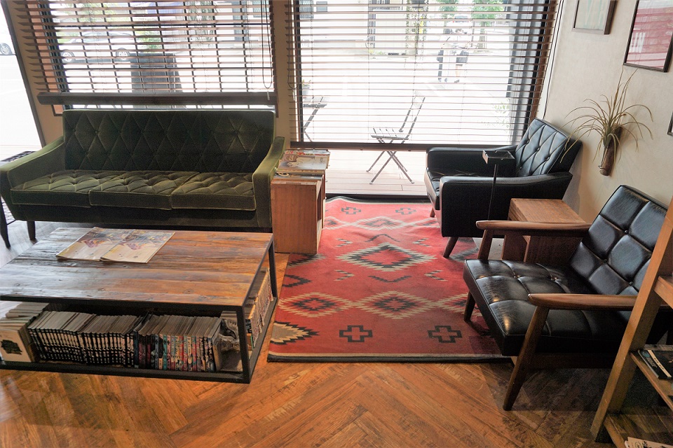 カット面の椅子はバルセロナチェアでゆったりとお座りいただけます。