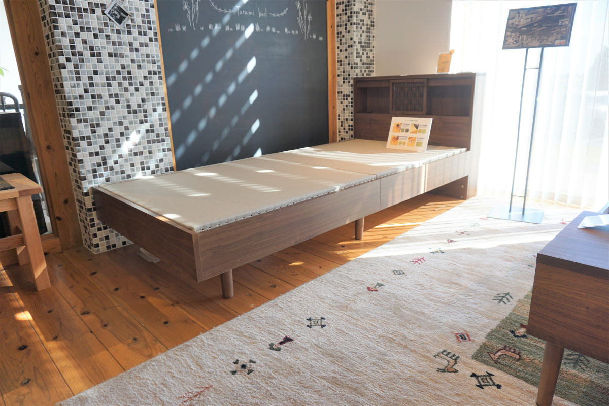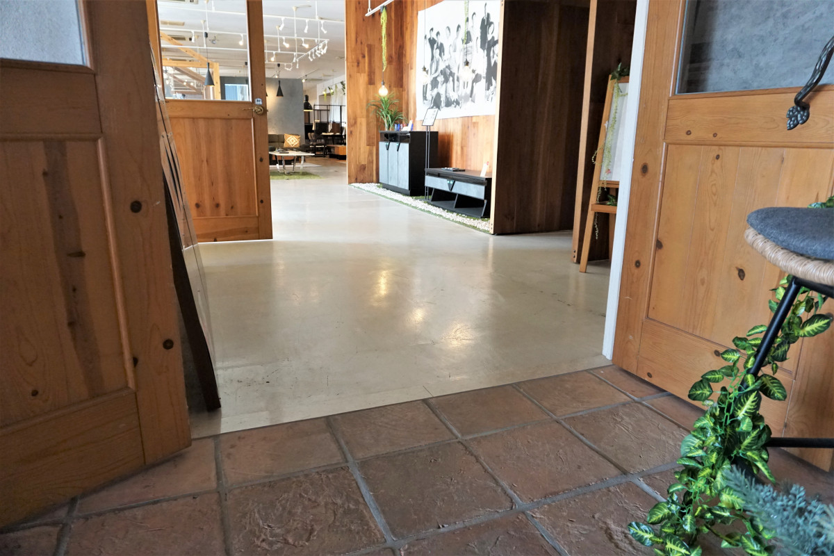 佐賀平野に突然あらわれる洋風の建物です。会長が家具の勉強をするために渡った、アメリカのサンタフェの街の建物をモデルに建築されました。敷地内は広く、工場と併設されております。配送トラックの出入りもありますので、ご来店の際はご注意ください。施設内は車いすでの入店、並びにベビーカーのままでの入店可能です。入り口までに8段ほど階段があります。お手伝いが必要な方はご予約時にその旨お伝えください。