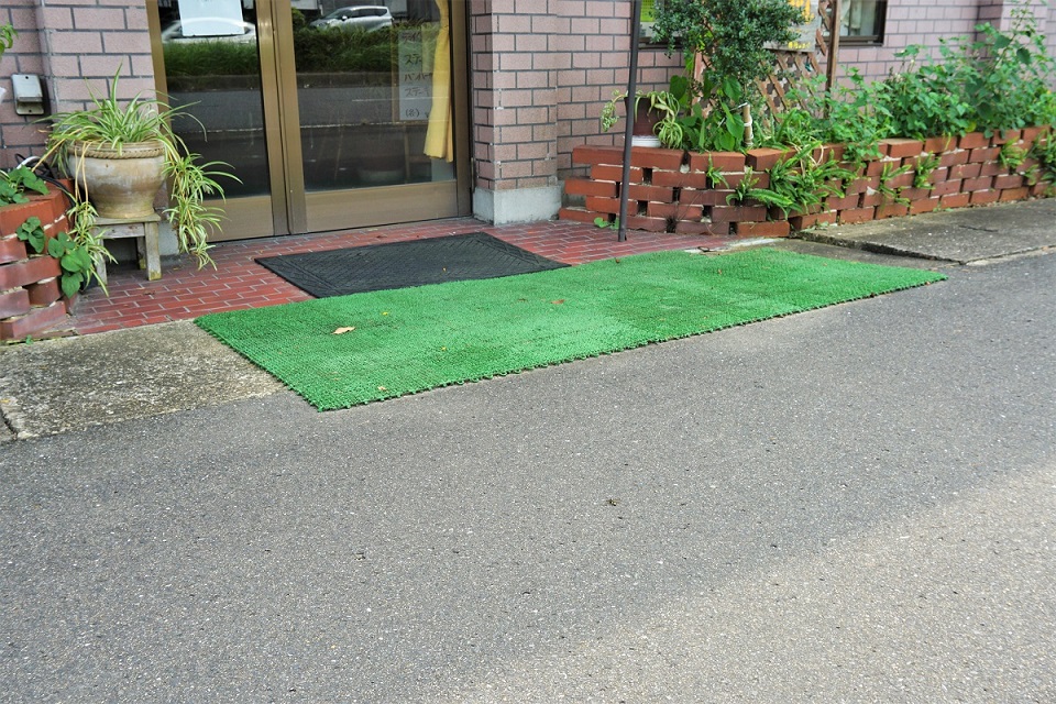 駐車場は建物裏の路地を入った場所にあります。店舗入り口から、屋内フロアへ1段下がる段差があり、角度があるスロープを設置しております。トイレにも段差がありますので、お写真でご確認ください。2階には団体様向けのお部屋もあります。