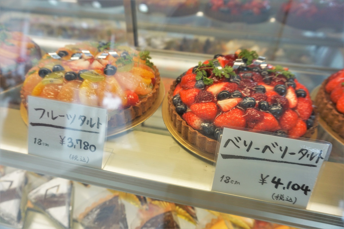 ケーキのご予約について、フルーツタルトは前日予約、チョコやクリームなどのムース系は3日前までにご予約ください。