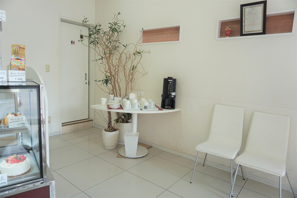 ご購入いただいたケーキをイートインスペースにて食べることができます。お皿に乗せてお出ししますのでお声掛けください。
