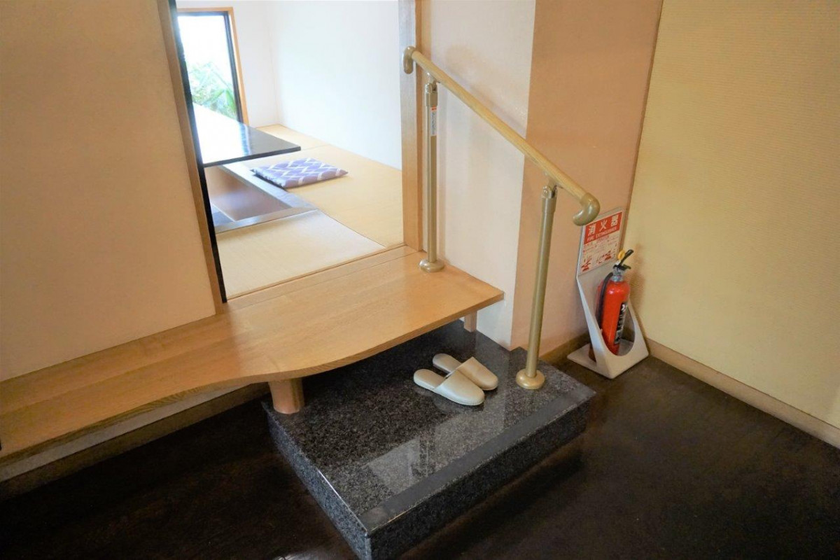 個室へ入る際には、段差がありますので、手すりをご利用ください。