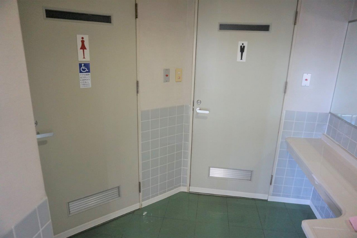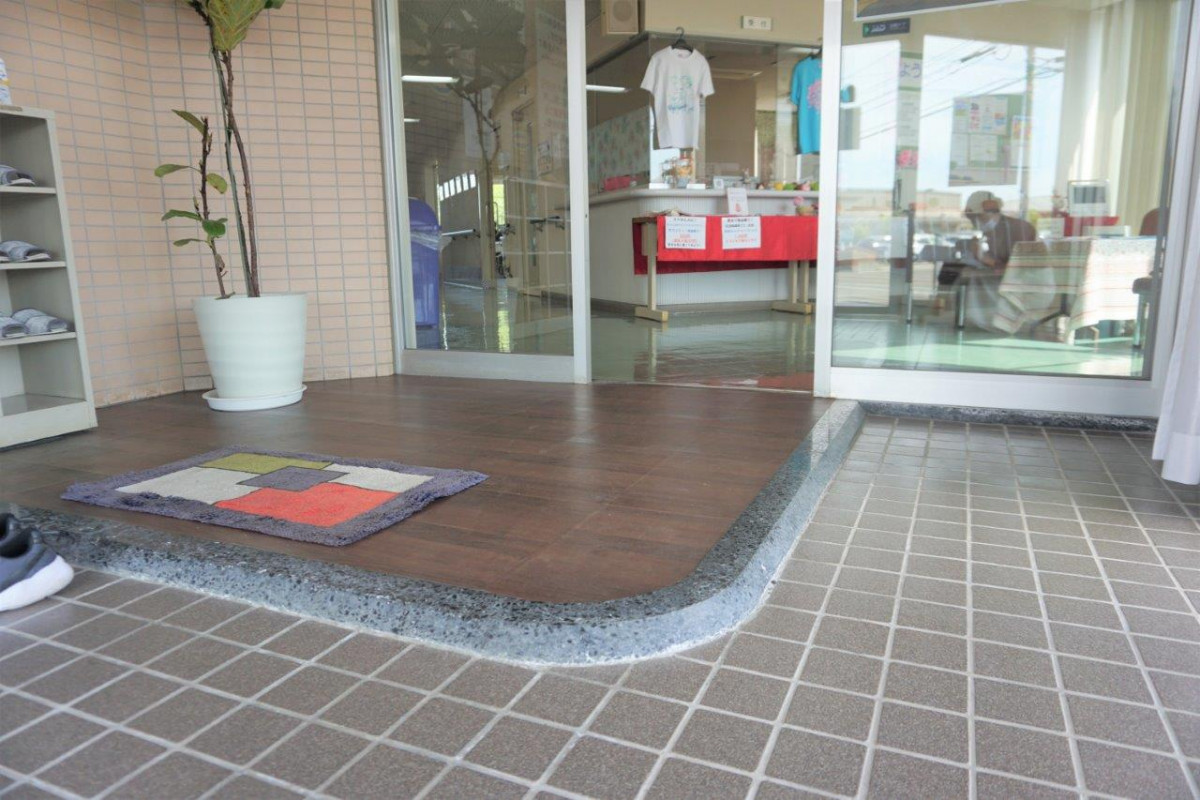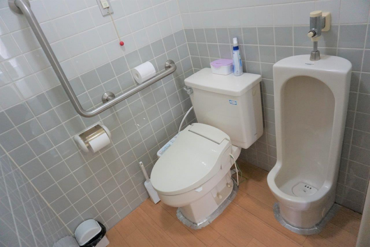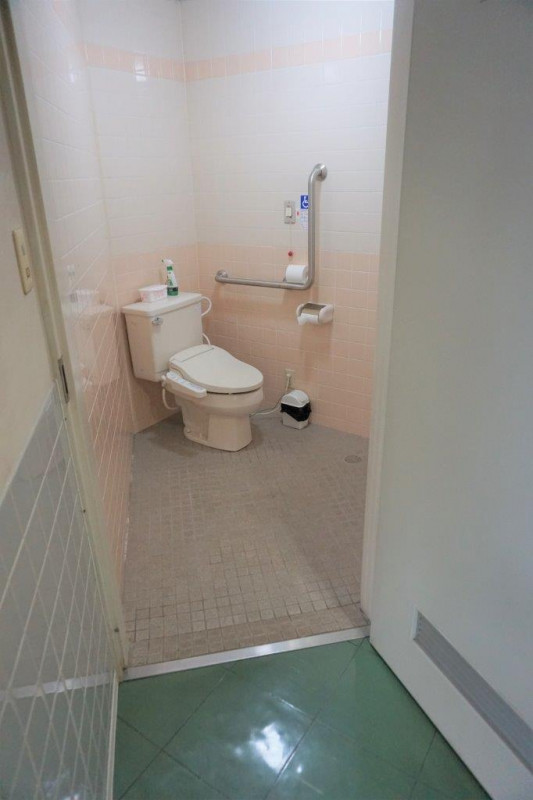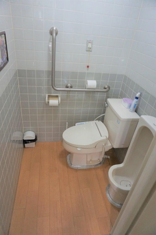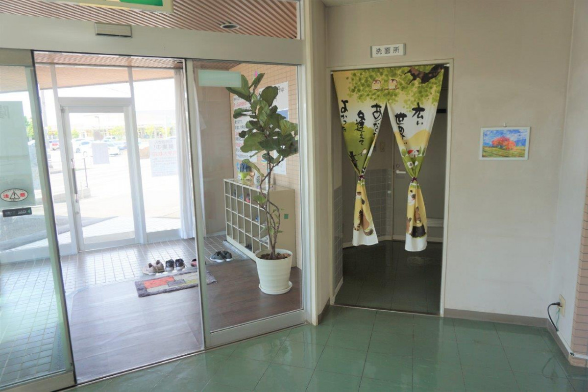 施設入り口すぐに、多目的トイレがあり、ロビーには、いすと机も準備しております。