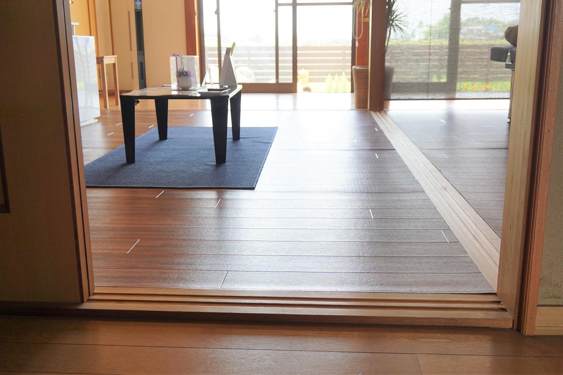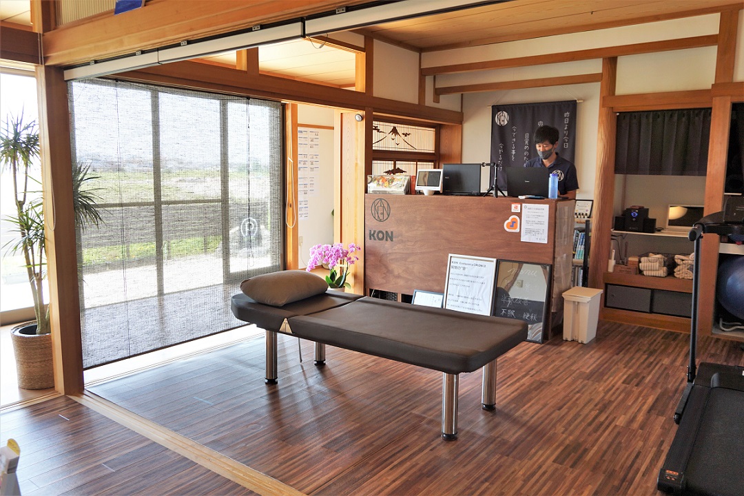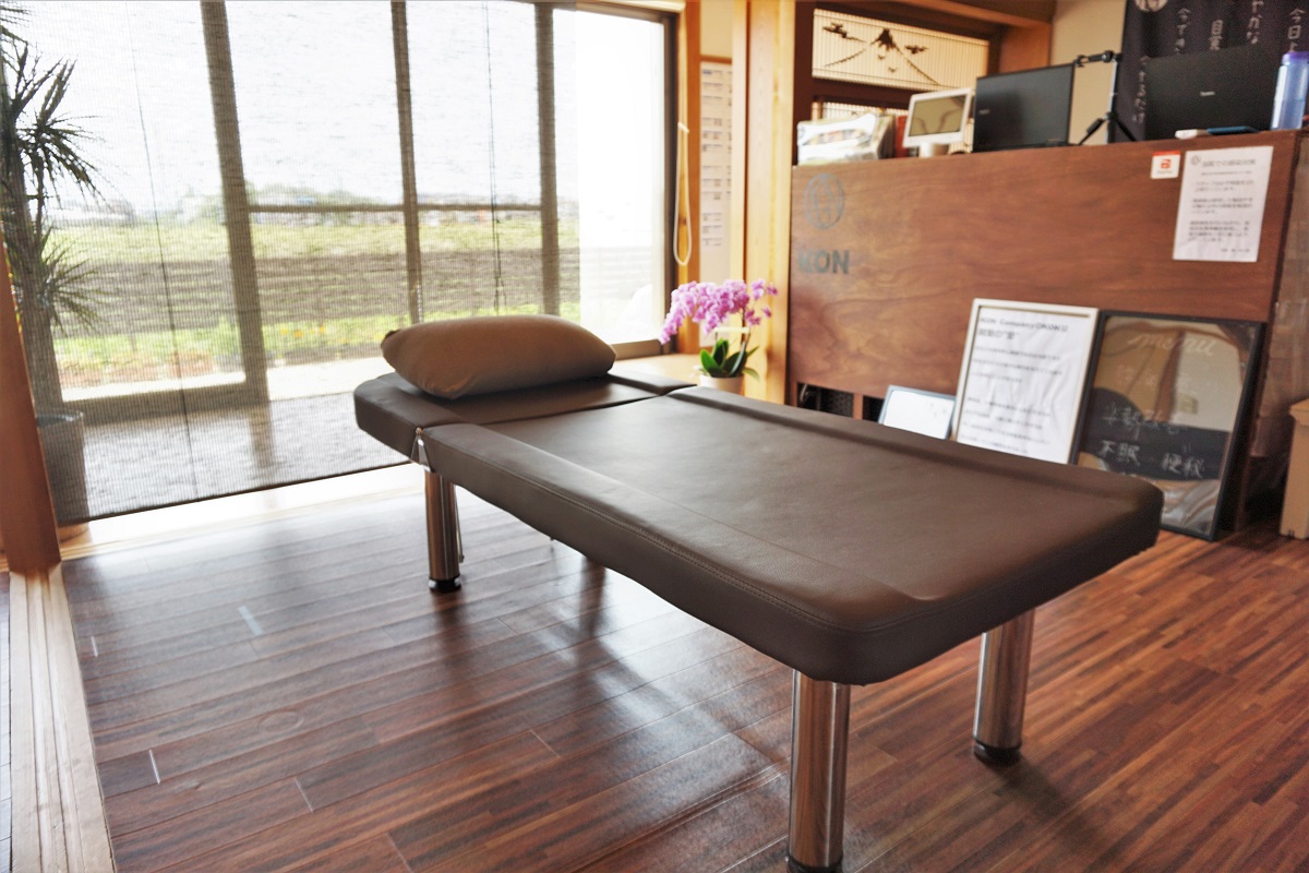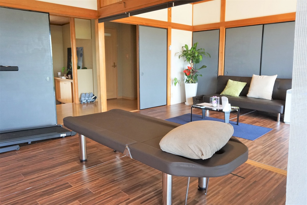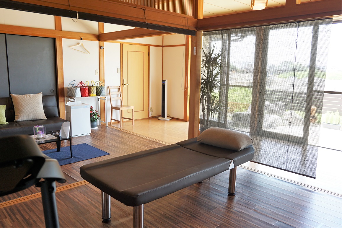田んぼに囲まれた一軒家が住宅兼店舗です。駐車場は舗装されておりません。住宅兼店舗のため出入り口までの通路、玄関内にも段差があります。事前にご連絡頂ければ、車椅子の出入り介助をさせていただきます。施術ルームは広くお子様連れでも来店可能です。ビデオ鑑賞のできるキッズルームもございます。