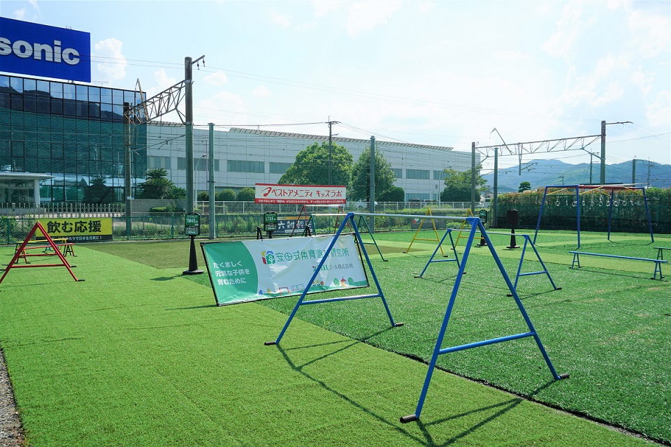 人工芝の広場『キッズラボ』に「安田式遊具」設置