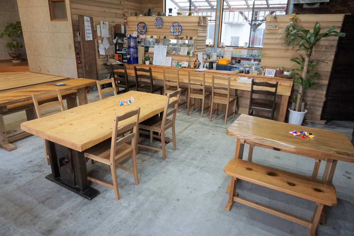 オーナー自身の手で改装した店内で、手作りの家具や木製カウンターに囲まれる中、定食やホットサンドなどの軽食、コーヒーを楽しめます。