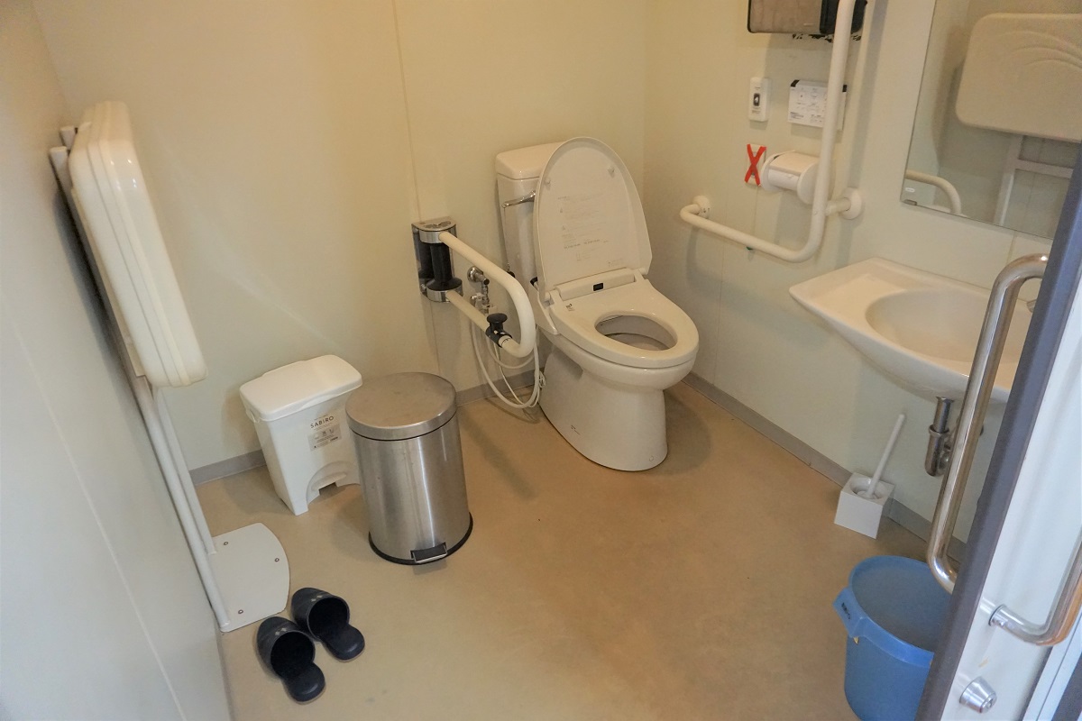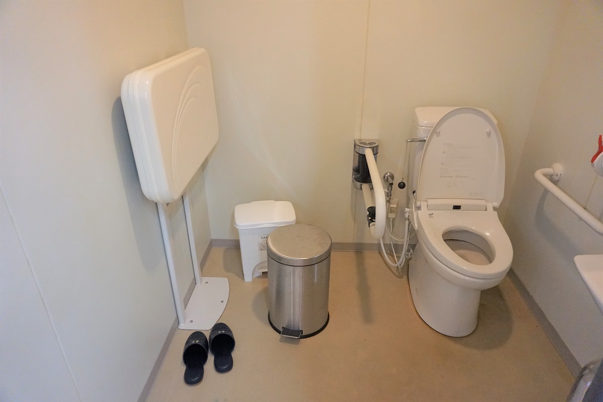 車いす等でもスムーズに入れるトイレもありますので安心してご来店ください。