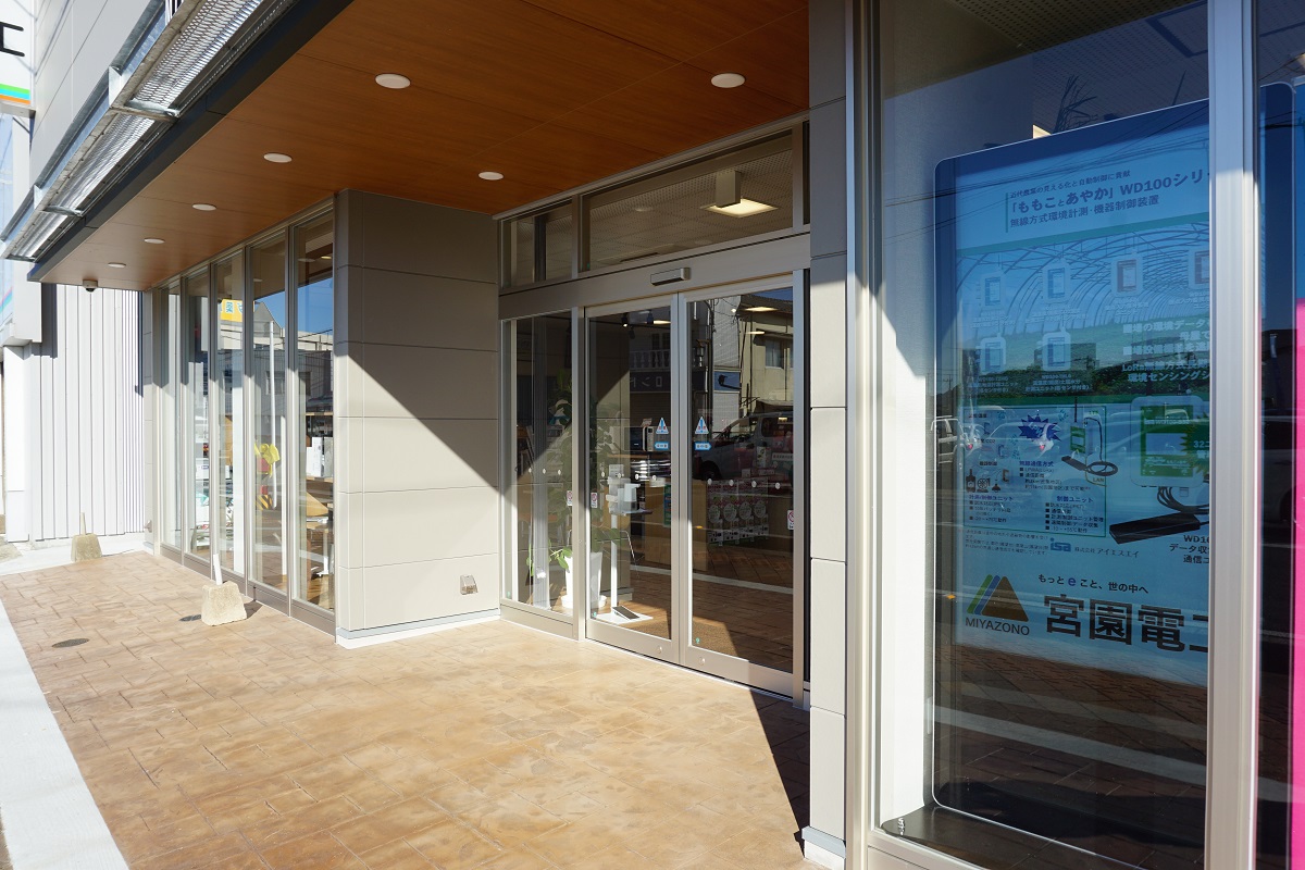 駐車場は建物裏にあり、店舗入り口までは少々傾斜になっております。正面出入口は自動ドアで、ベビーカーのままや車いすでの入店もスムーズです。