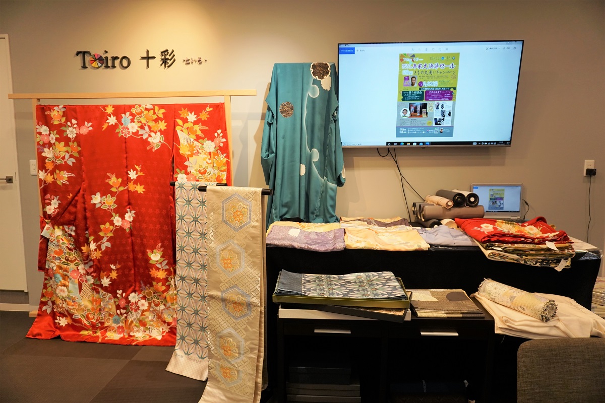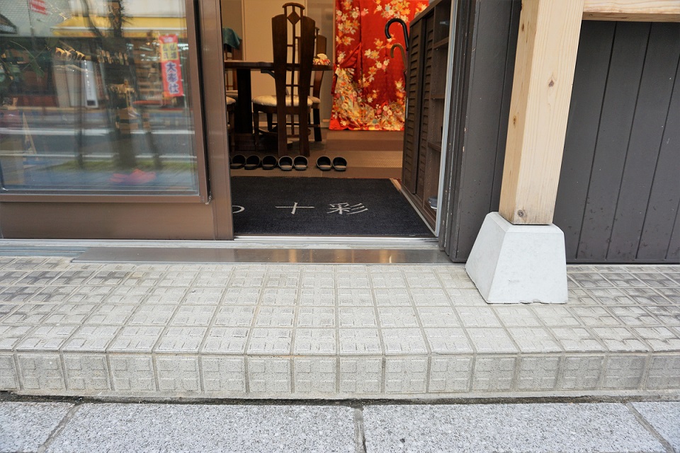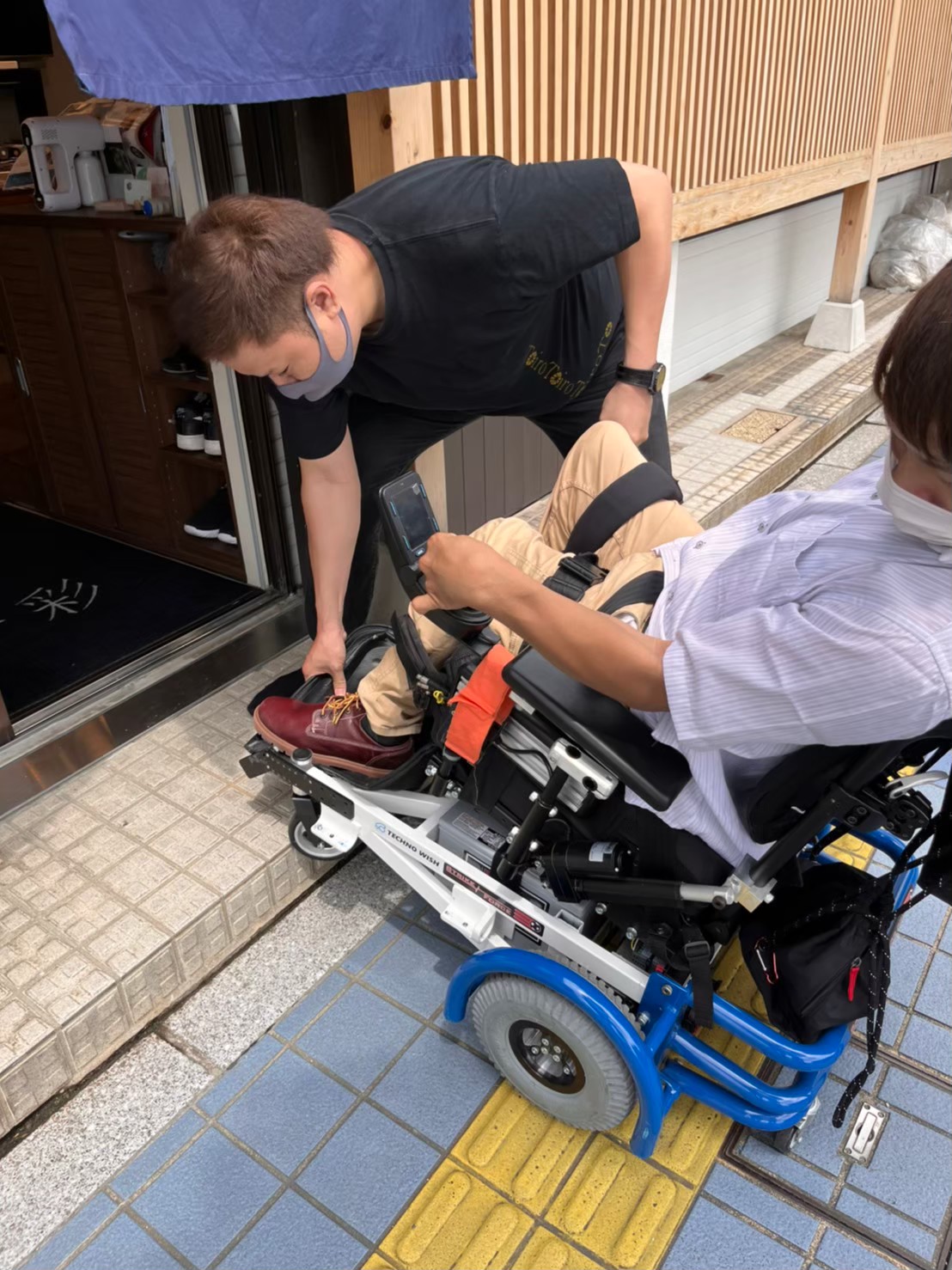 店内に入る前に段差がありましたが、お店の人が車椅子を持ち上げてくださり、お店に入ることが出来ました。また、一つひとつ丁寧に着物や帯などを説明してもらいました。他にも、車椅子ユーザーさんが飲み物を飲みやすいようにストローを持ってきてくださったりと様々な配慮をしてくださいました。