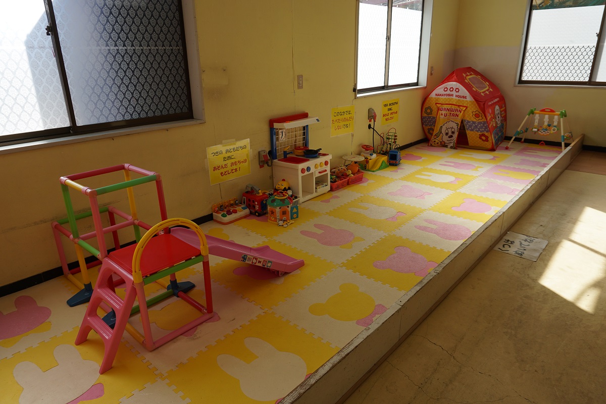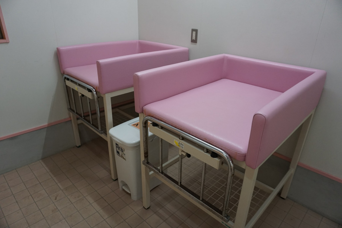 入口そばの休憩室の2階にはベビーベッド2台ございます。