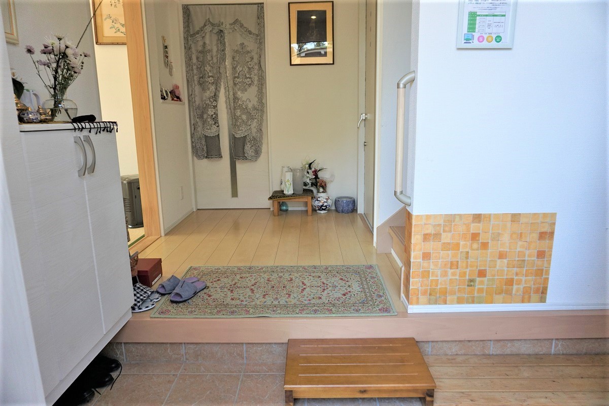 段差は、出入口までに3段、屋内への登り口に1段あります。