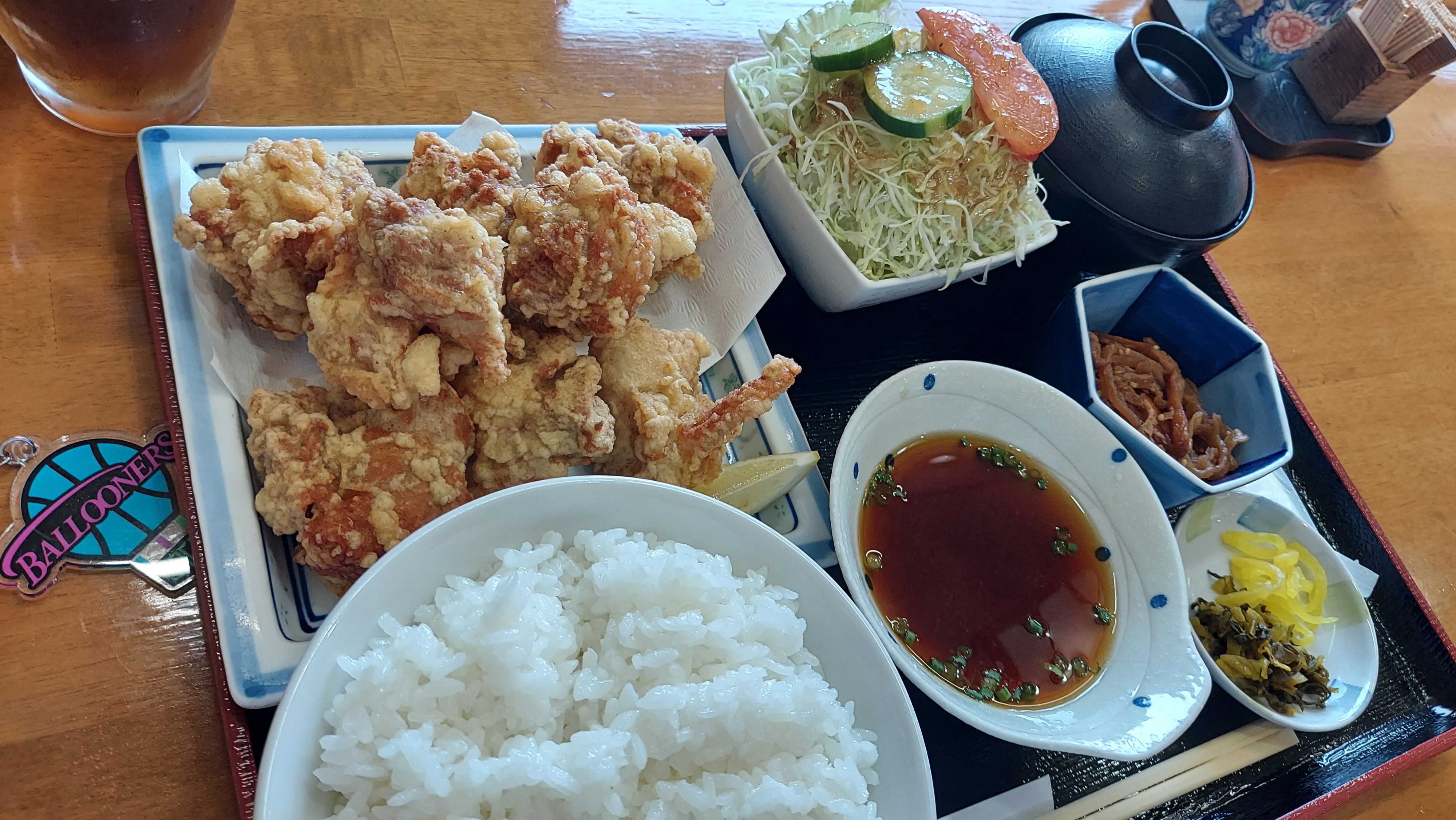 大人気の大きな唐揚げは8個入り。天汁に付けてたべるのもまた絶品!!