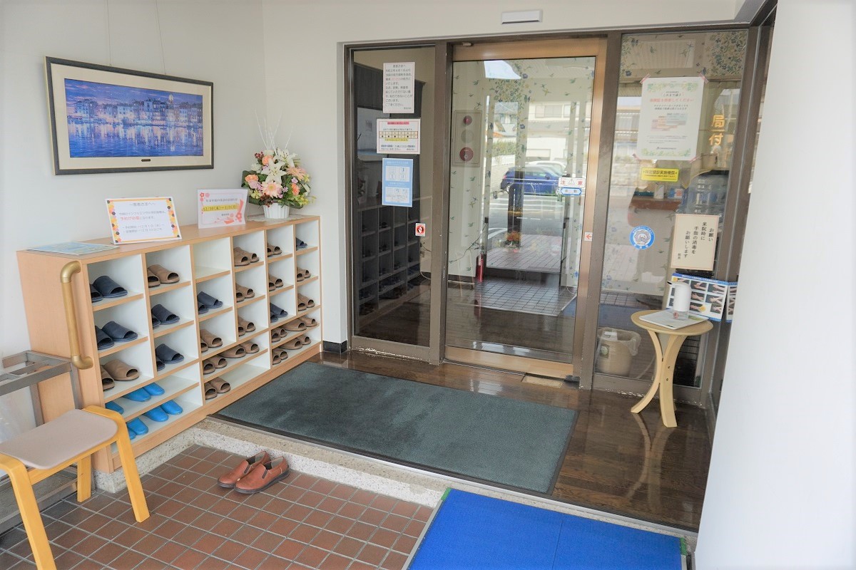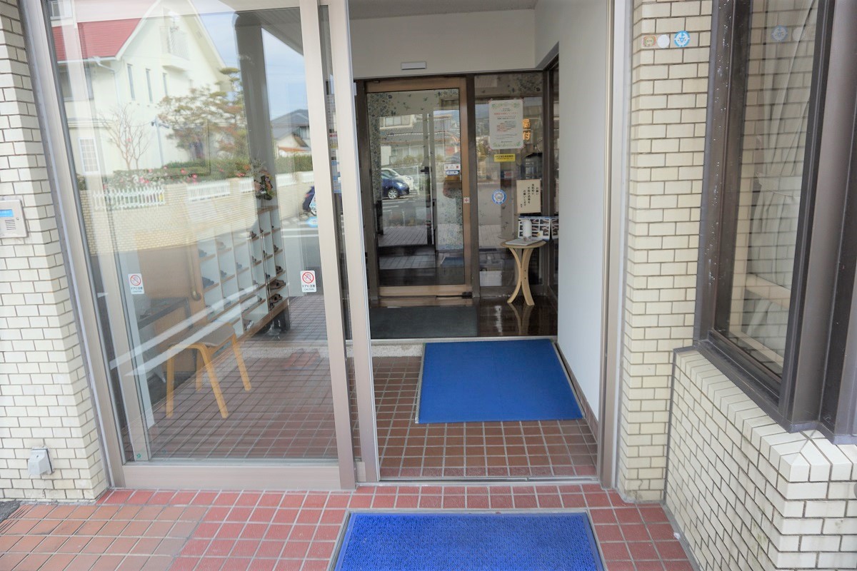 玄関内に段差がありますが、スロープを設置していますので、車いすや手押し車、ベビーカーでもそのままお入りください。