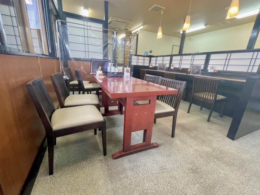 店内はフラットになっており、カウンター席とテーブル席の椅子は、移動できます。
