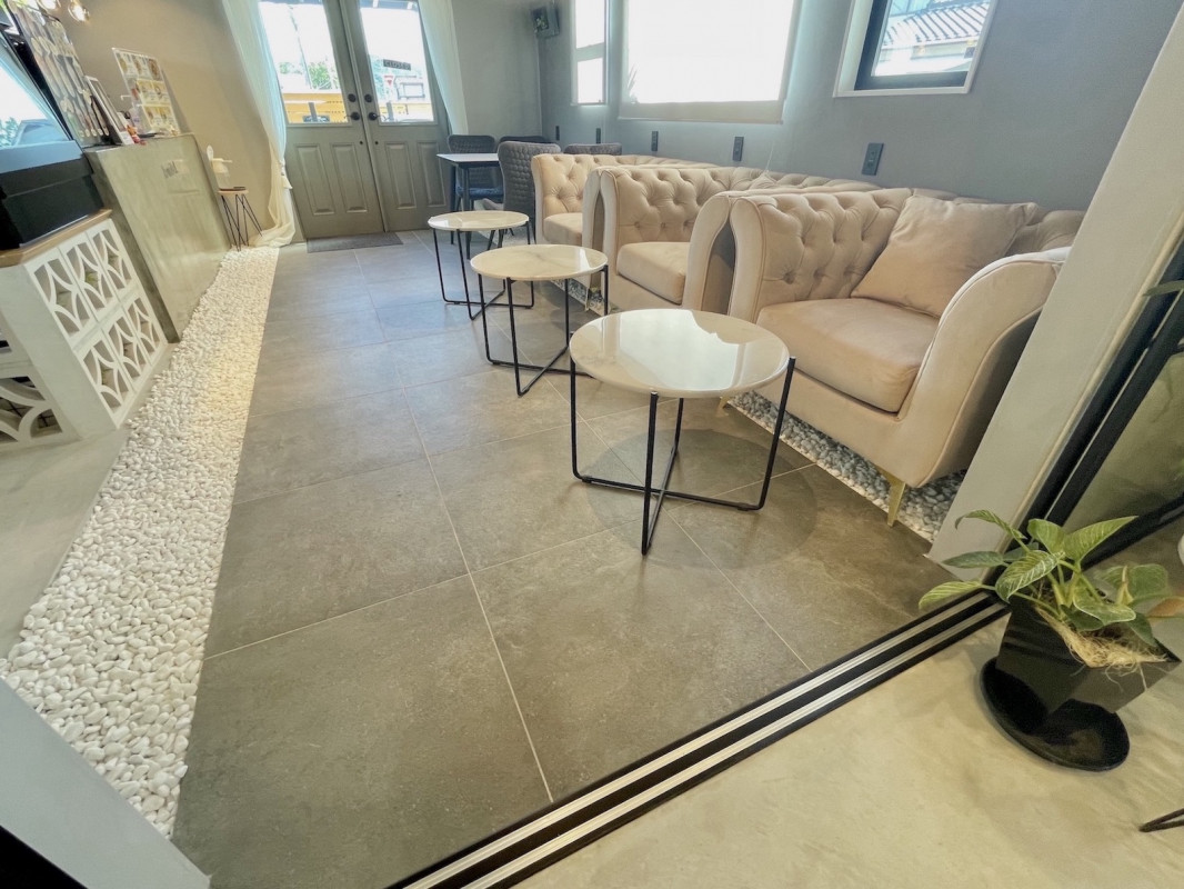 カフェスペースのソファは大きく、おむつ交換もソファで行えます。