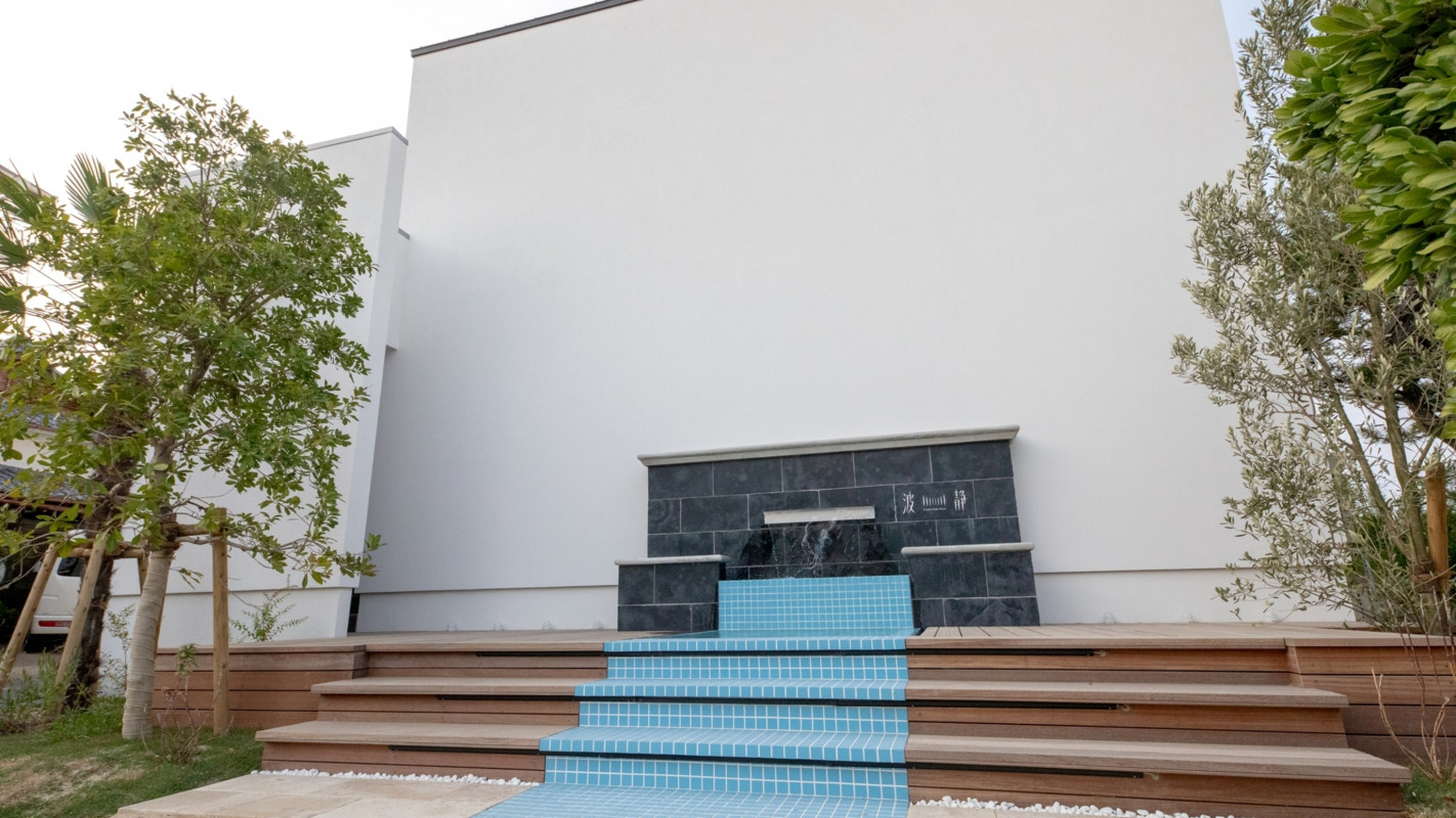 夕方には、ライトアップされた水盤にゆれる水を眺め、波の音に耳を傾ける。