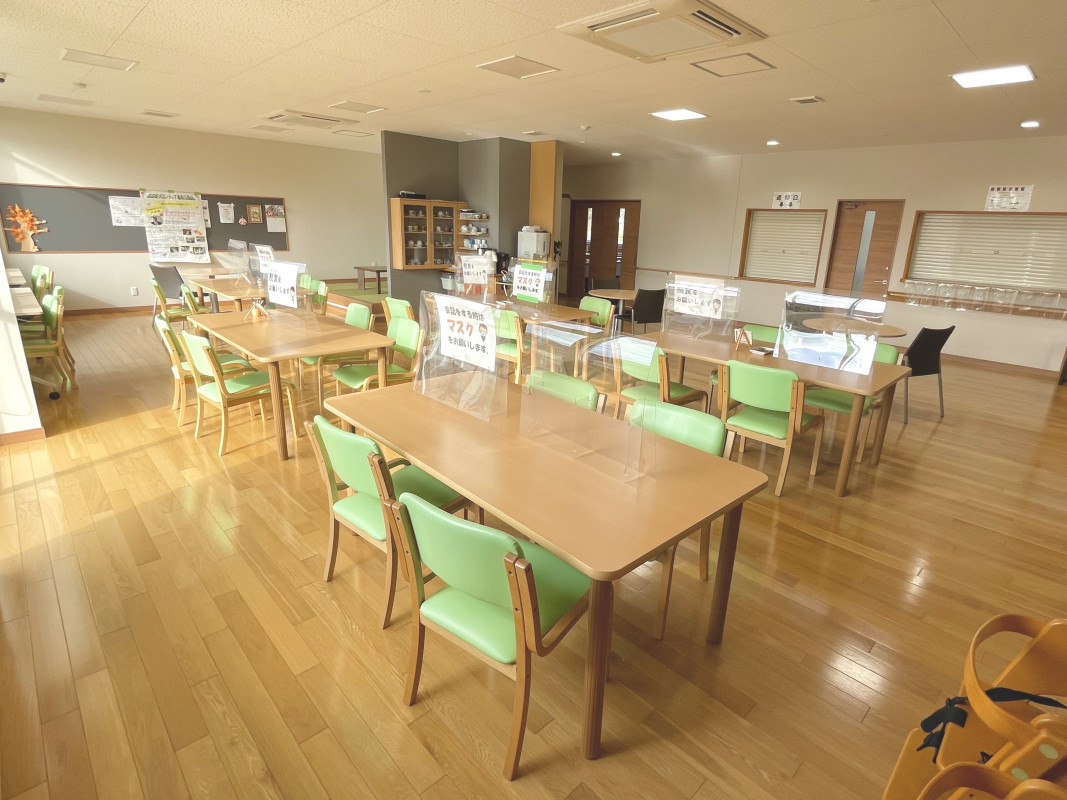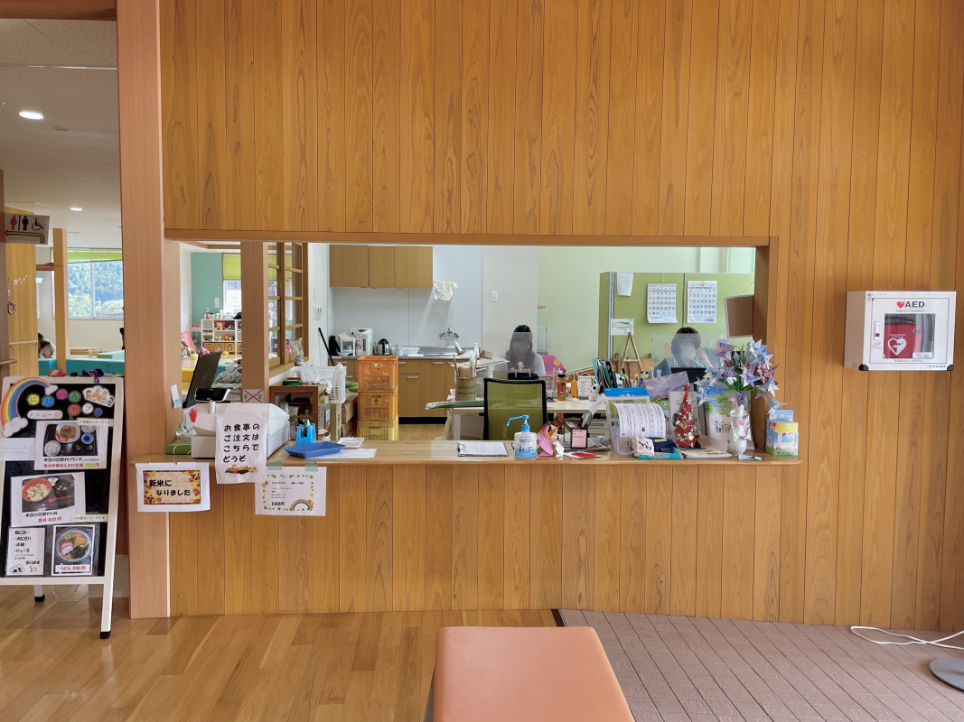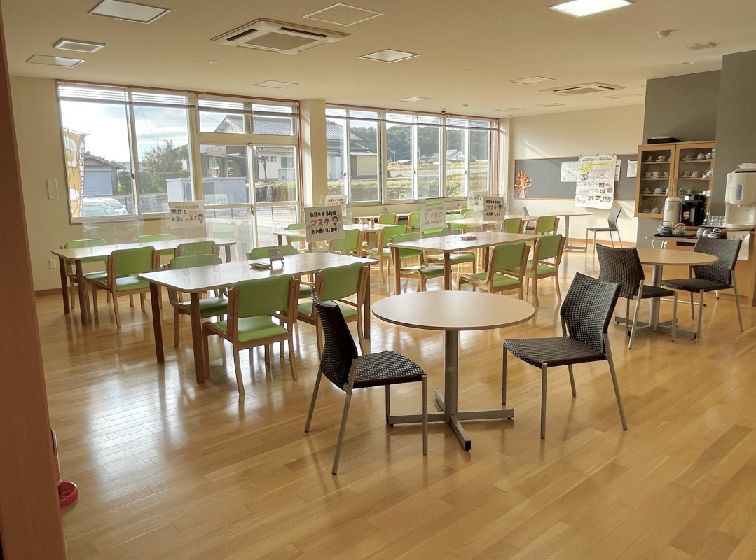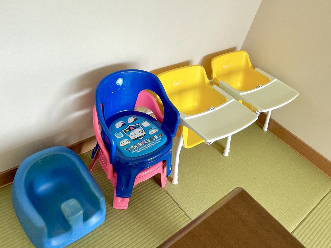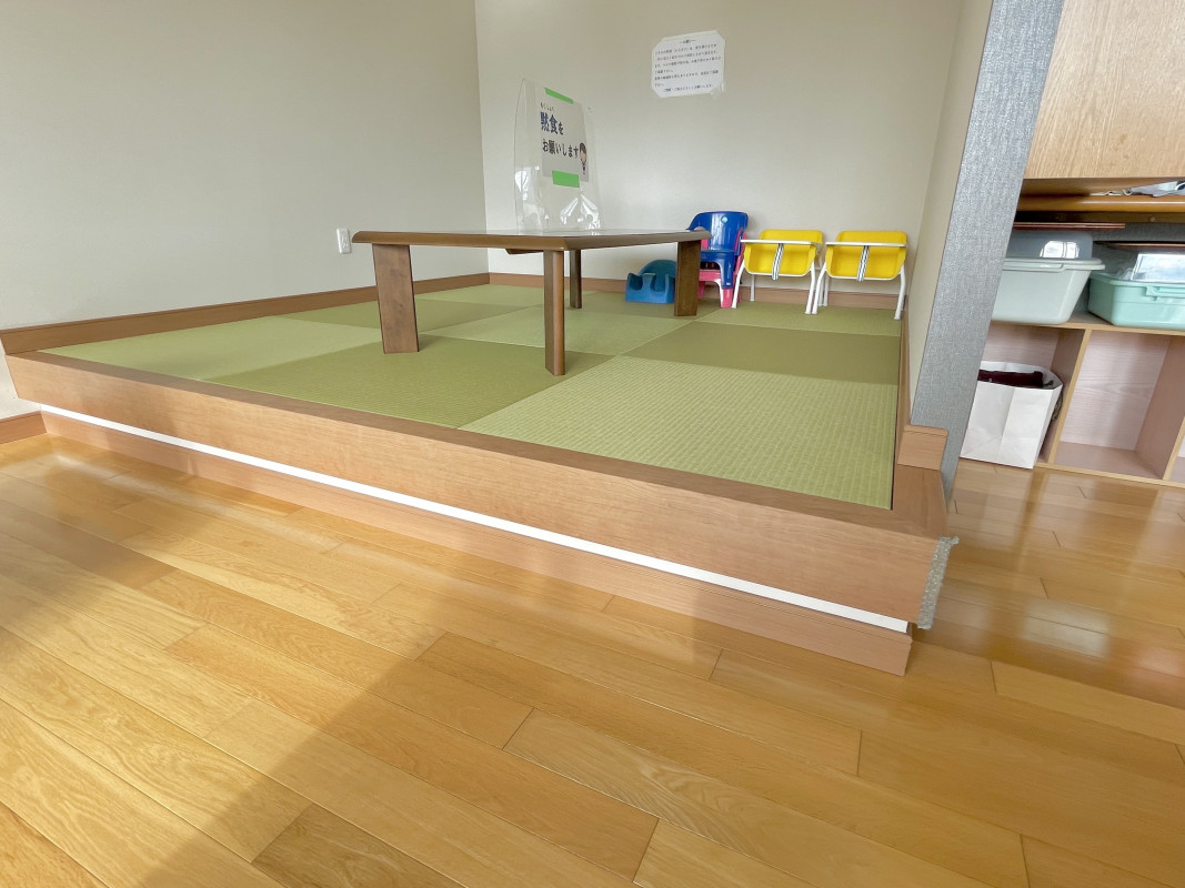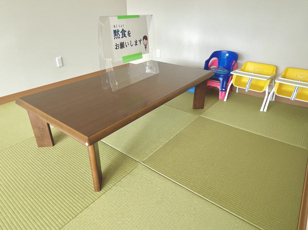 カフェスペースはテーブル席(可動式椅子)と、小上がりの畳の席があり、子ども用の椅子も準備されています。