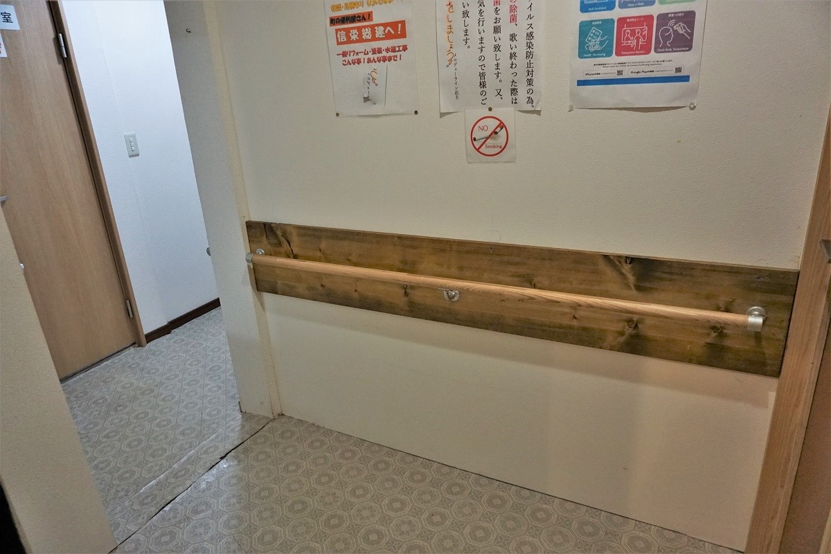 令和3年度さがすたいるプラス補助金を活用し、駐車場から店内までの通路や店内トイレまでの通路に手すりを設置しています。
