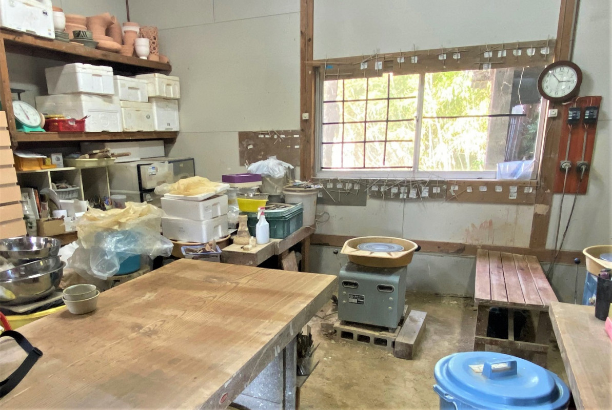 <陶芸体験スペース>通路は狭く段差もあります。事前にお問い合わせください。
