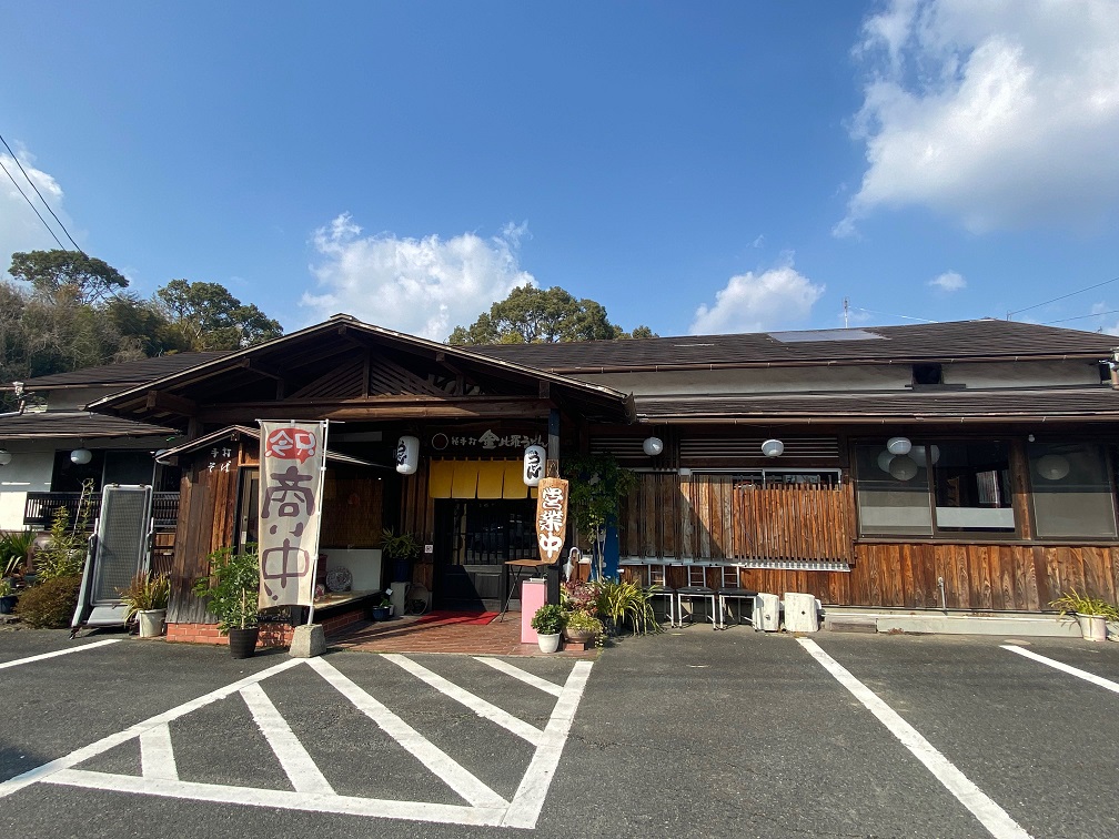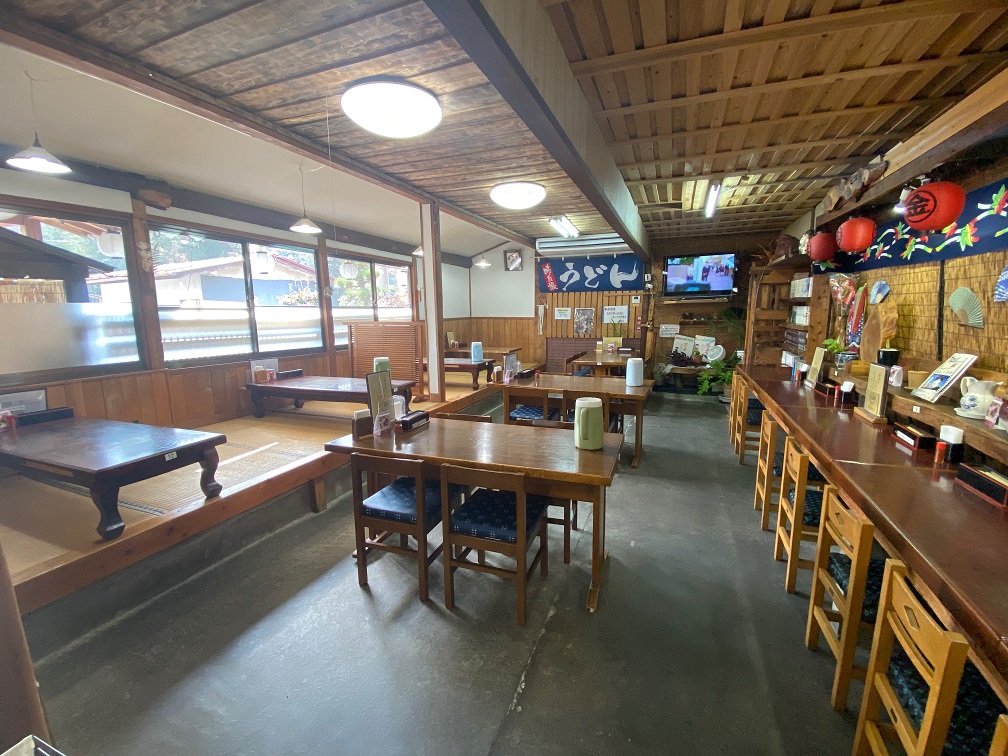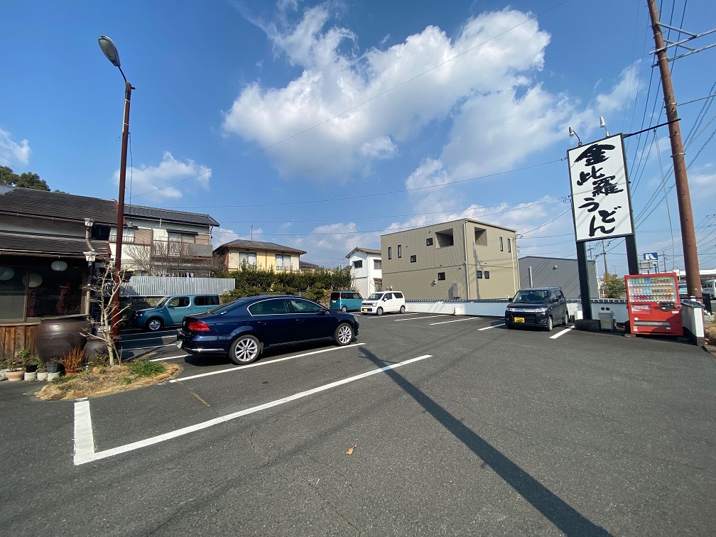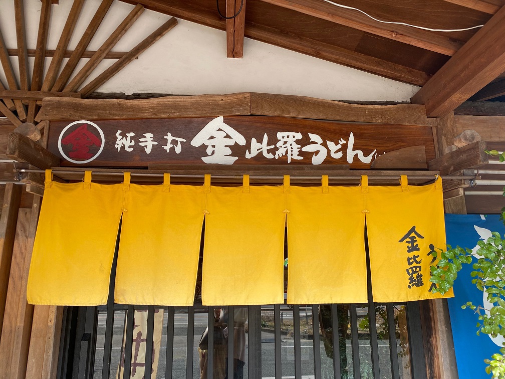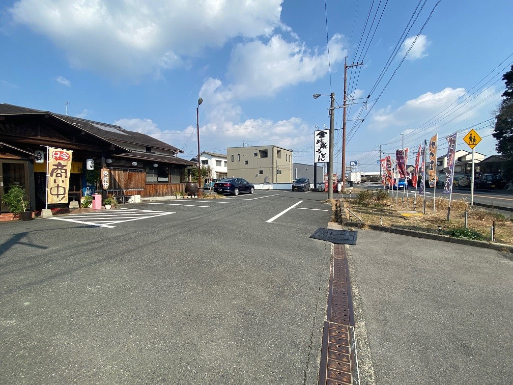 国道34号線沿いに大きな看板とのぼり旗が目印のうどん屋さん。