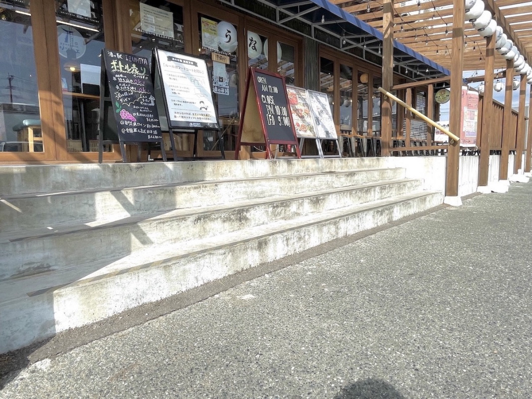 出入口前には約15cmの階段が4段あり、手すりがついています。