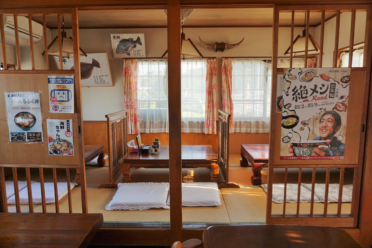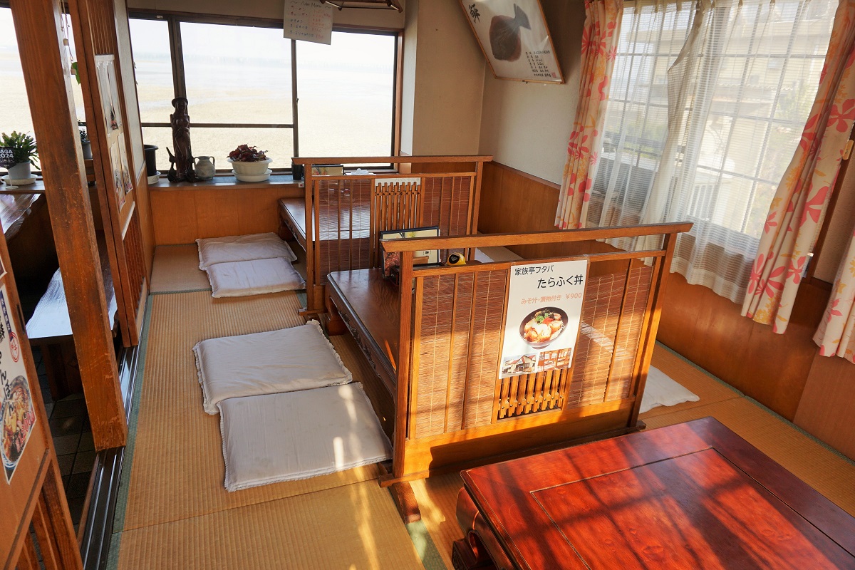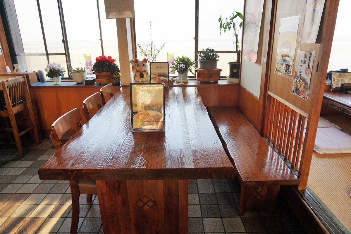 店内の窓からは有明海が一望でき、景色を楽しみながら食事をしていただけます。