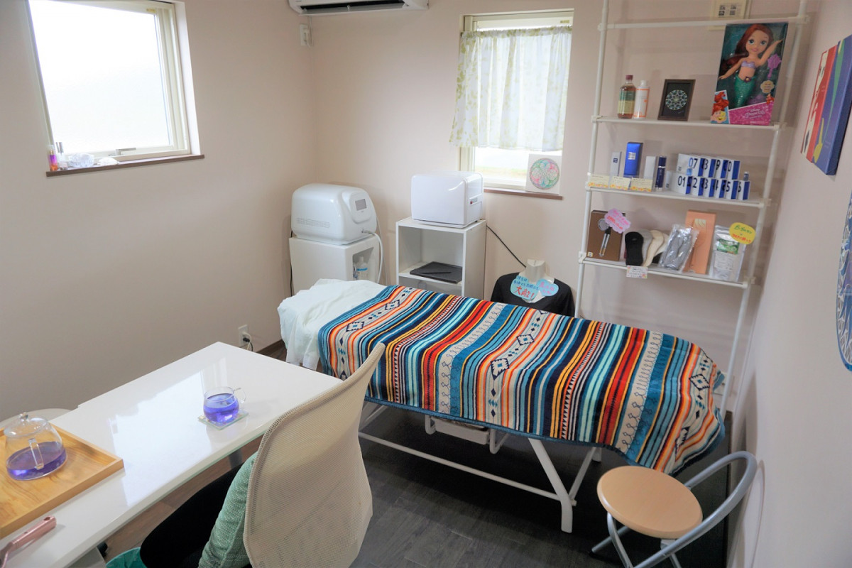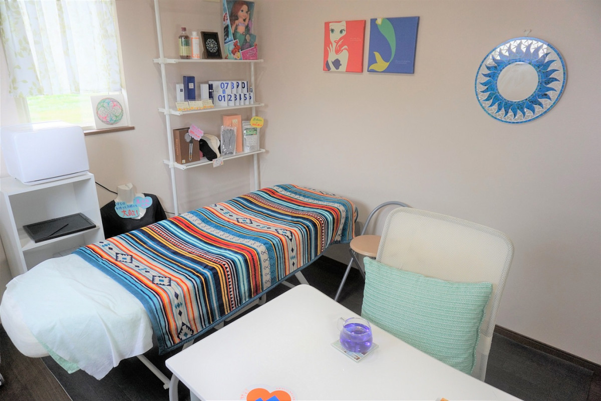 ニードルレスインジェクターと、痛くない小顔調整、手相鑑定、子育て相談など、様々な角度から、ママさんにリラックスタイムと、元気になってもらえるようなメニューを行っています。