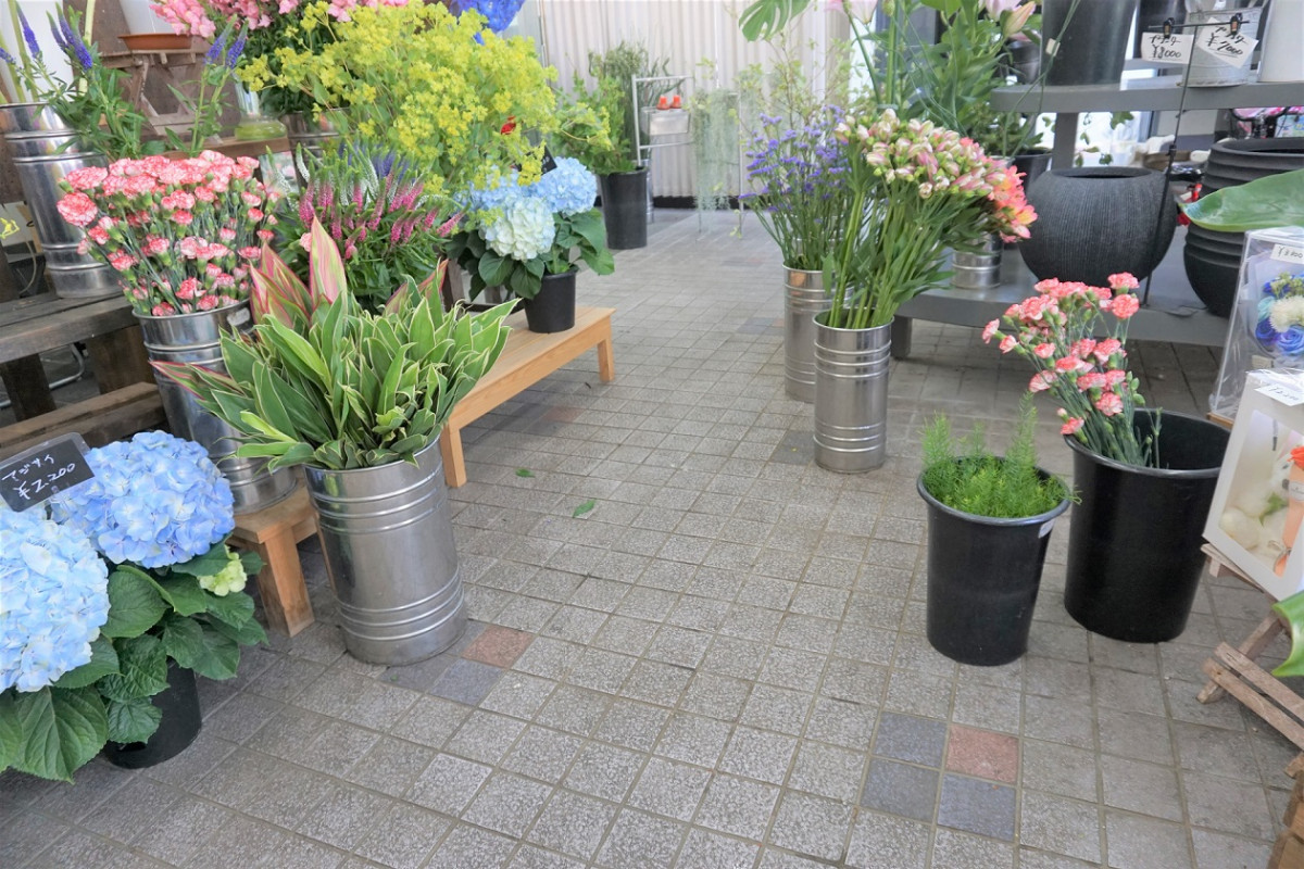 店内はフラットで通路も広く、たくさんのお花をゆっくり選ぶことができます。