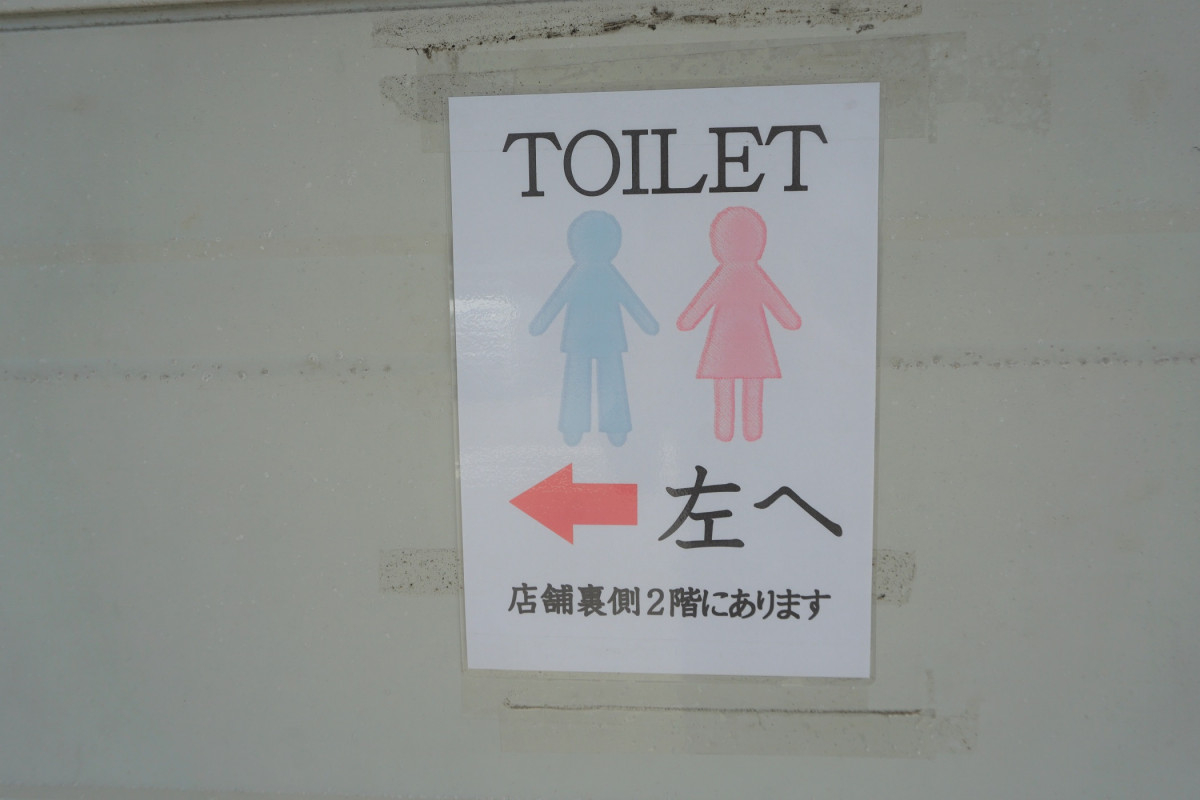 トイレは店舗裏の階段を上った2階にございます。
