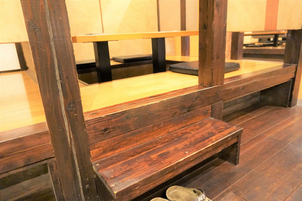 テーブル席は段差ないですが、お座敷へは2段の段差がございます。