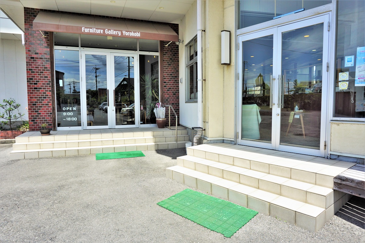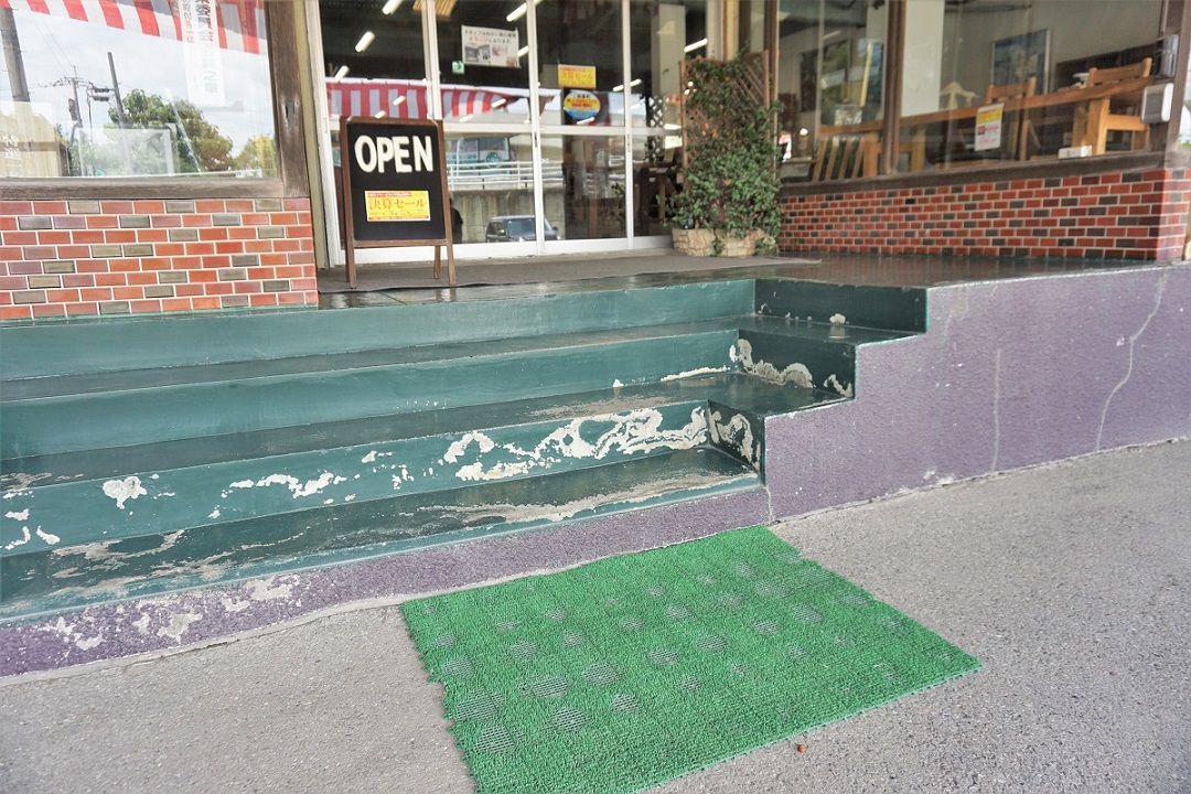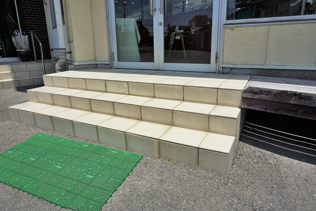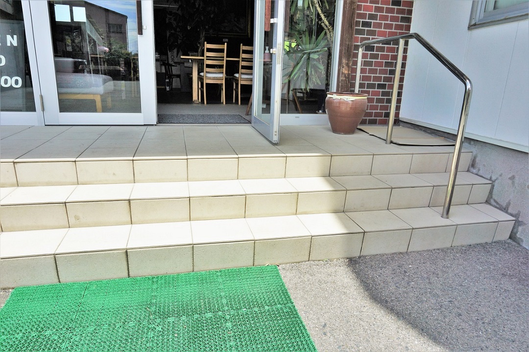 ・ショールームの出入口は2か所あり、どちらも3段の段差があります。