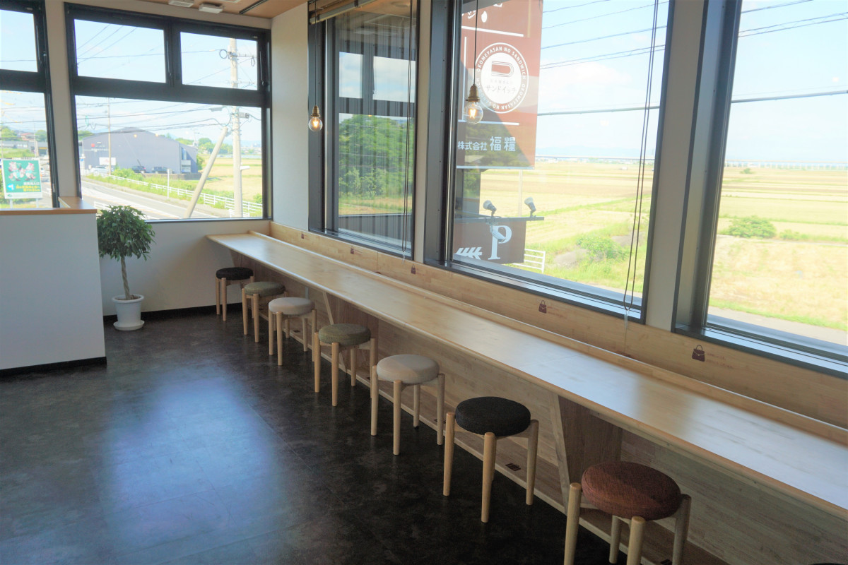 2階はのんびりとした眺めがひろがるイートインスペースとなってますので、ゆったりとしたお時間をおすごしください。