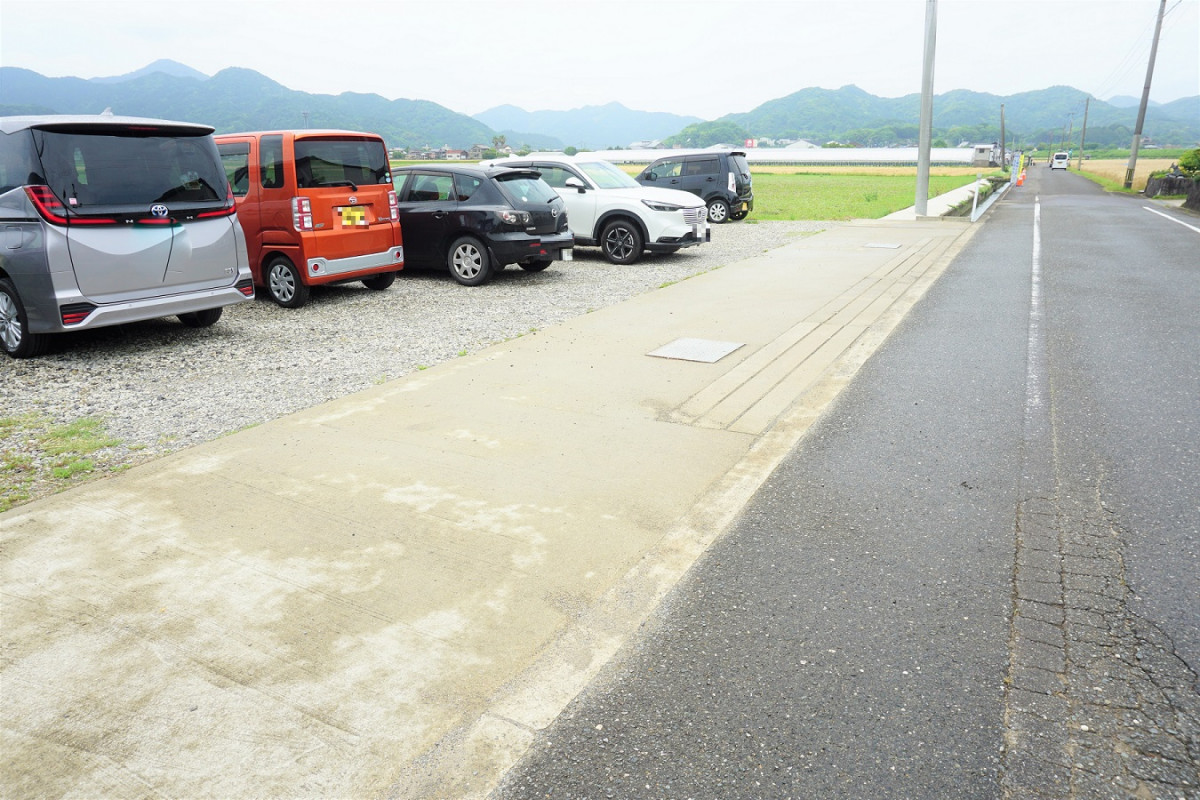 店舗前3台、道を挟んだ向かいに7台とめれます。