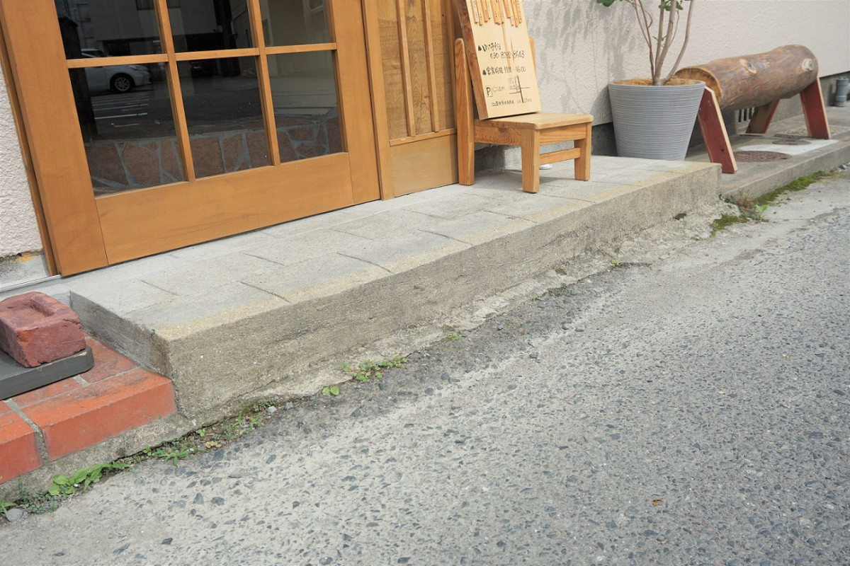 出入り口前に12センチほどの段差が1段あります。