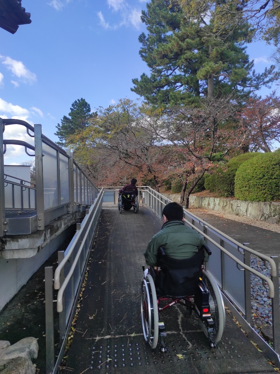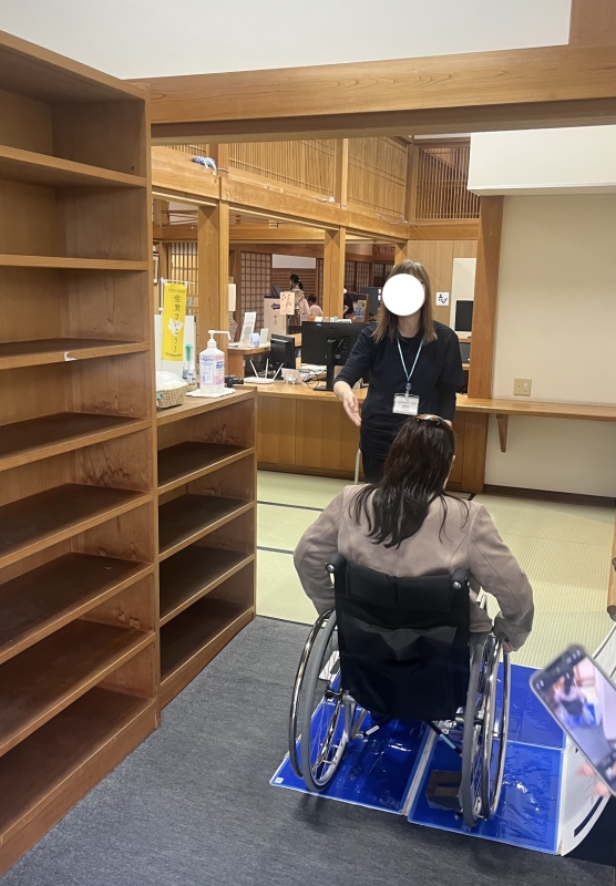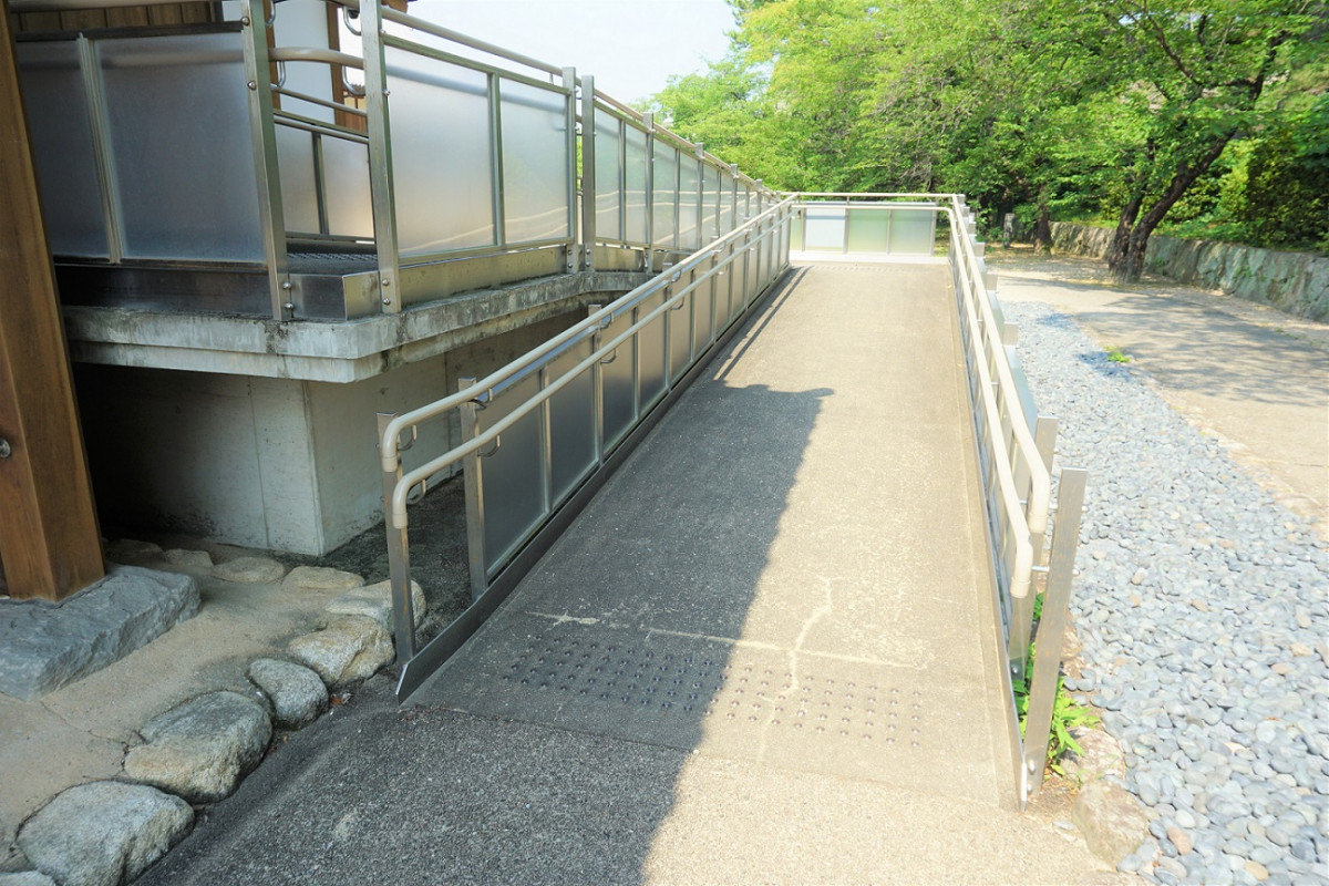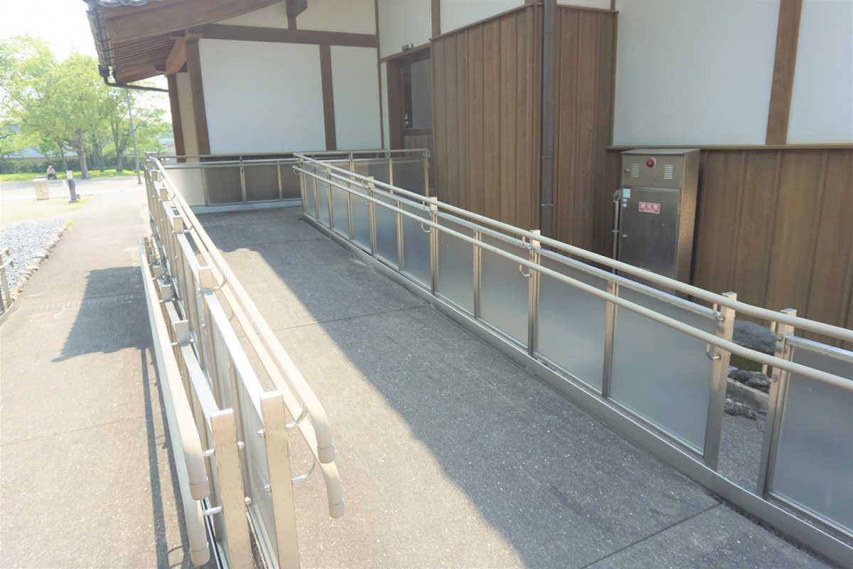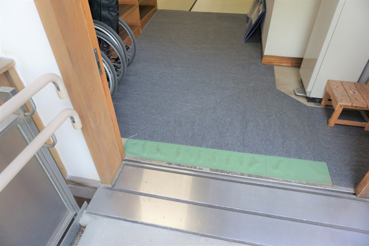 正面玄関は入口まで階段がございますが、スロープで入れる入口もございます。