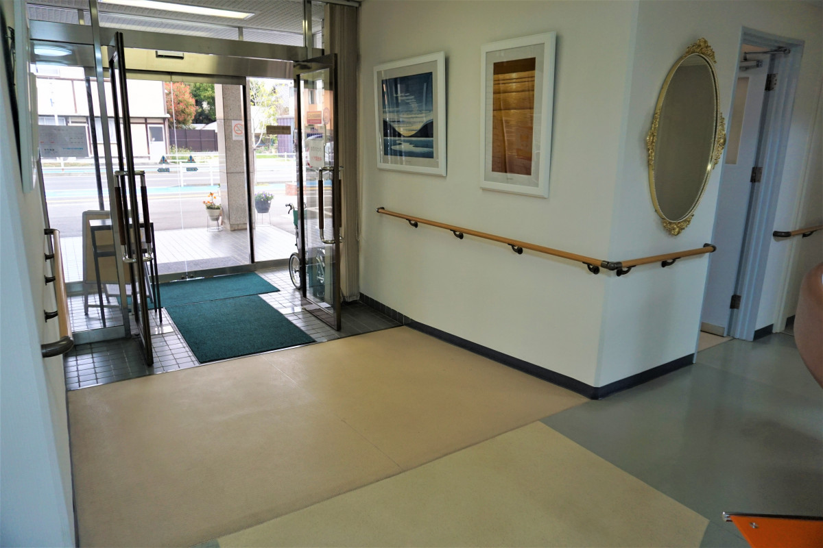 玄関入口はスロープになっていて、車いすのまま院内に入ることができます。