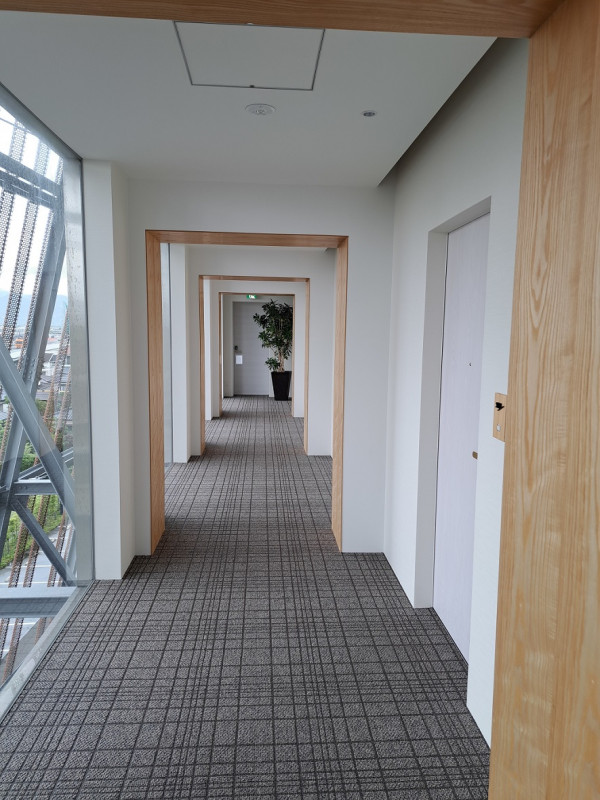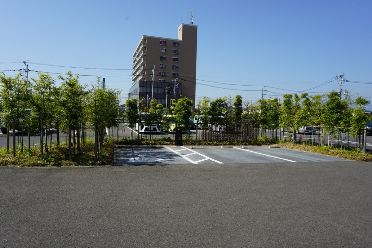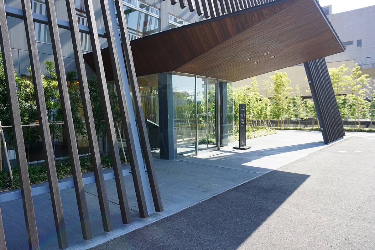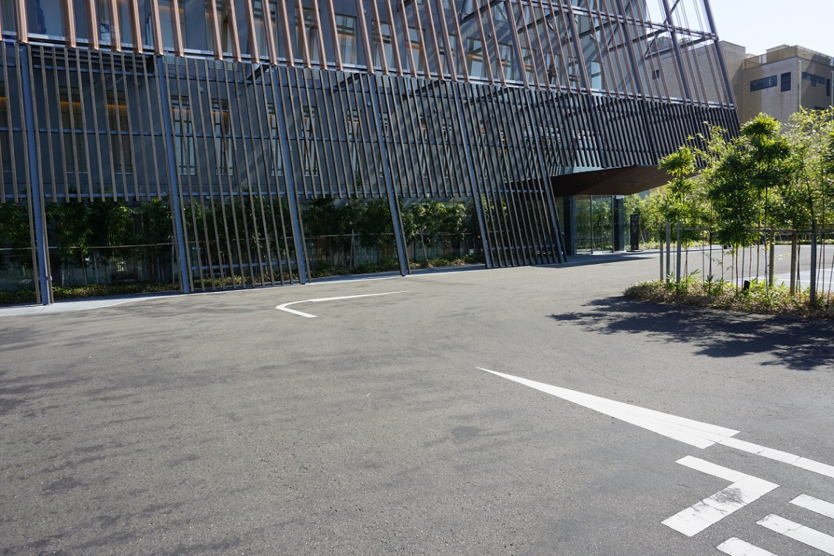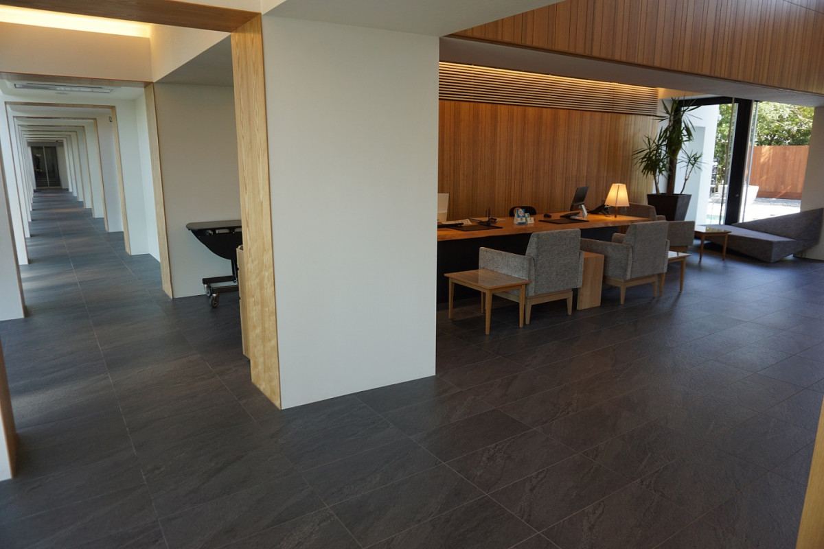 幹線道路から少し離れた、現代建築のエレガントなホテル。