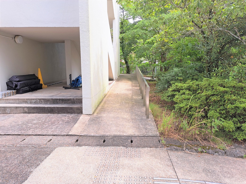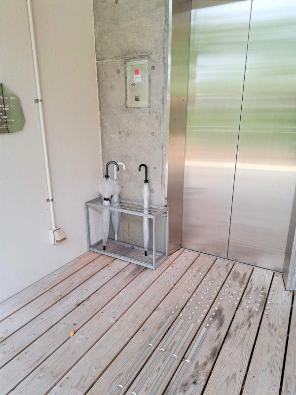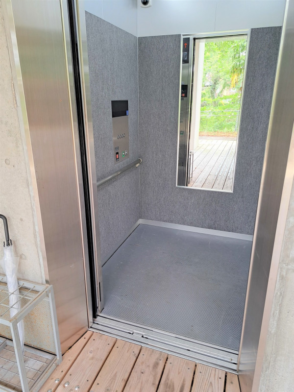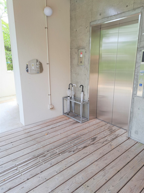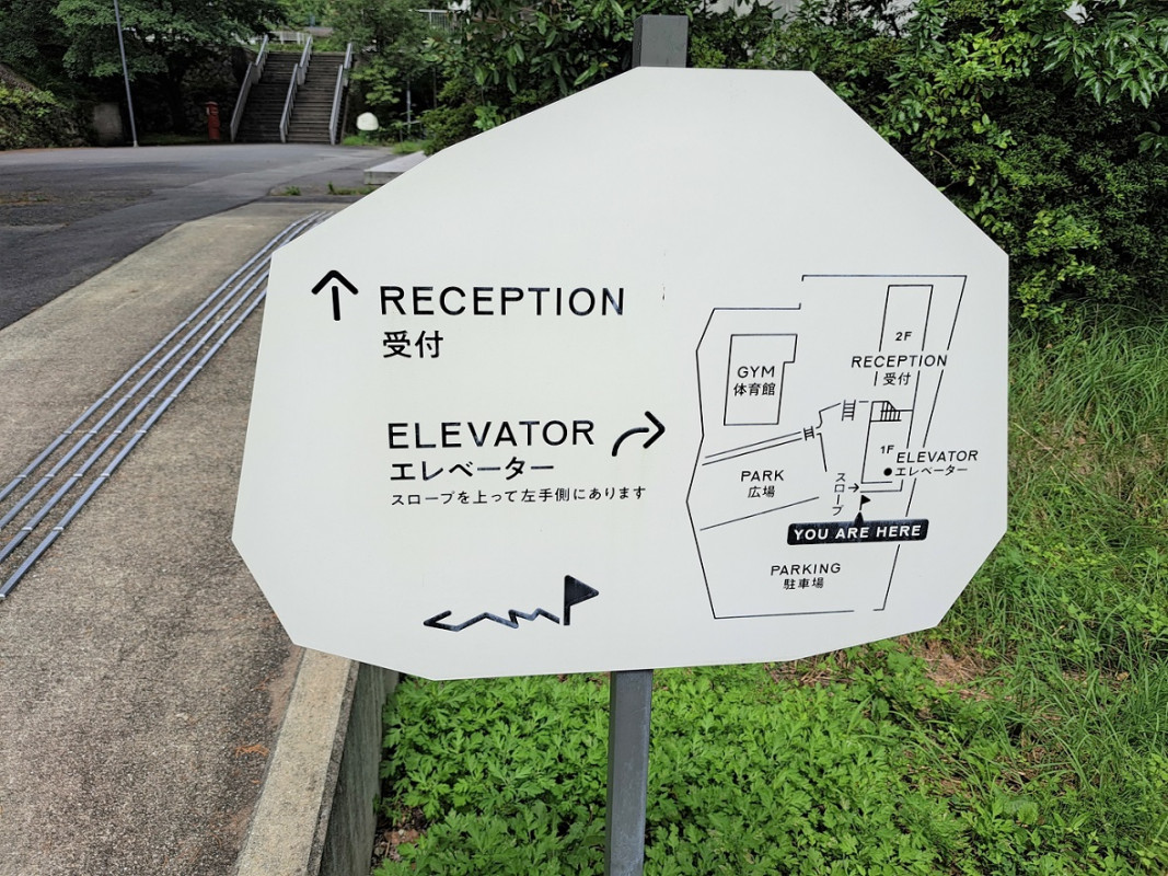 駐車場から受付へは階段をのぼりますが、エレベーターの利用で階段を使わず、段差なく受付できます。