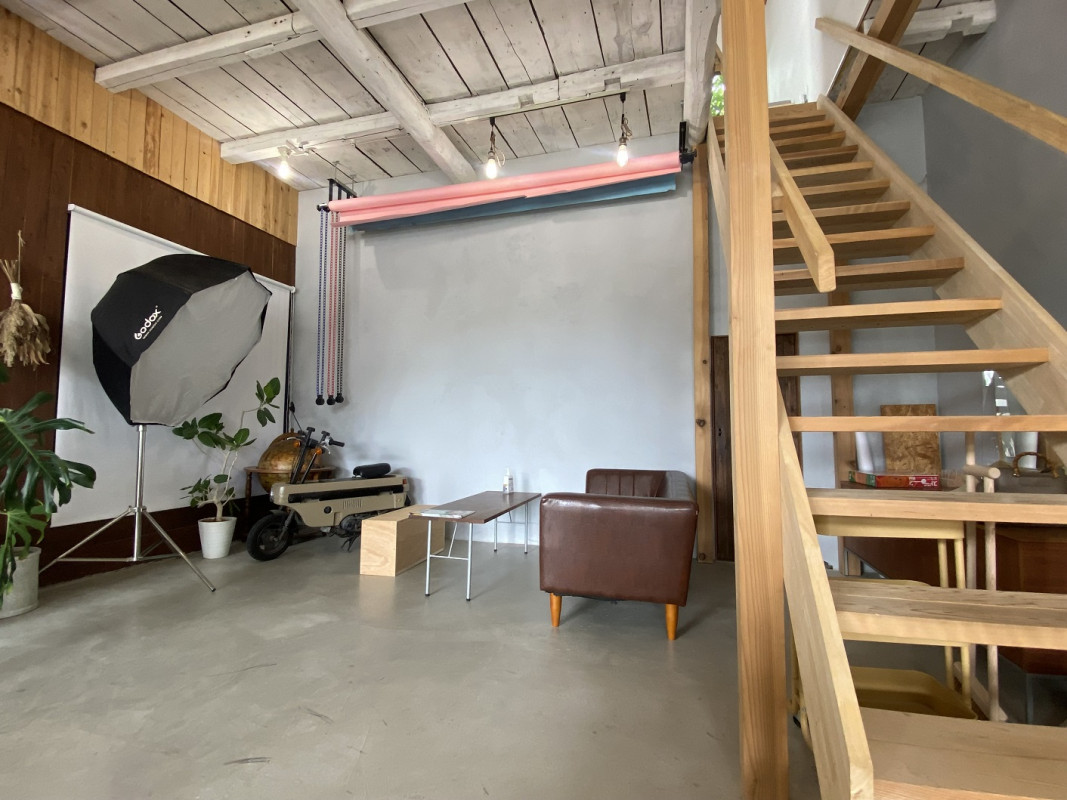フォトスタジオは階段のぼって2階です。