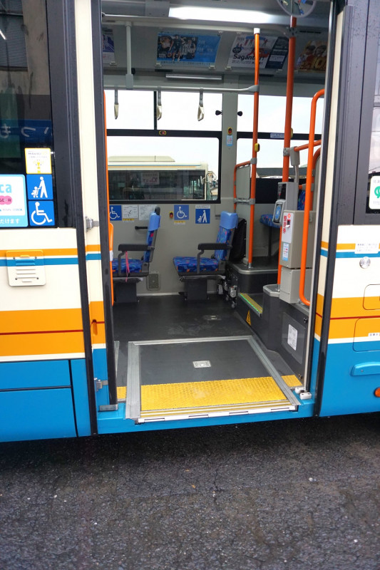 スロープ板を設置してあるため、車いすやベビーカー、シルバーカーのままで乗降できるようになっています。